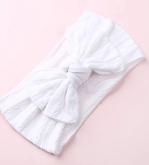 Повязка на голову Детская в рубчик, нейлоновая мягкая эластичная повязка на голову с бантом, для девочек, 1 шт.