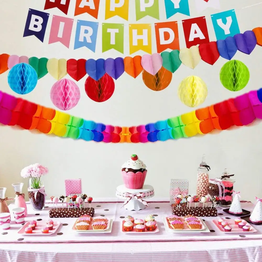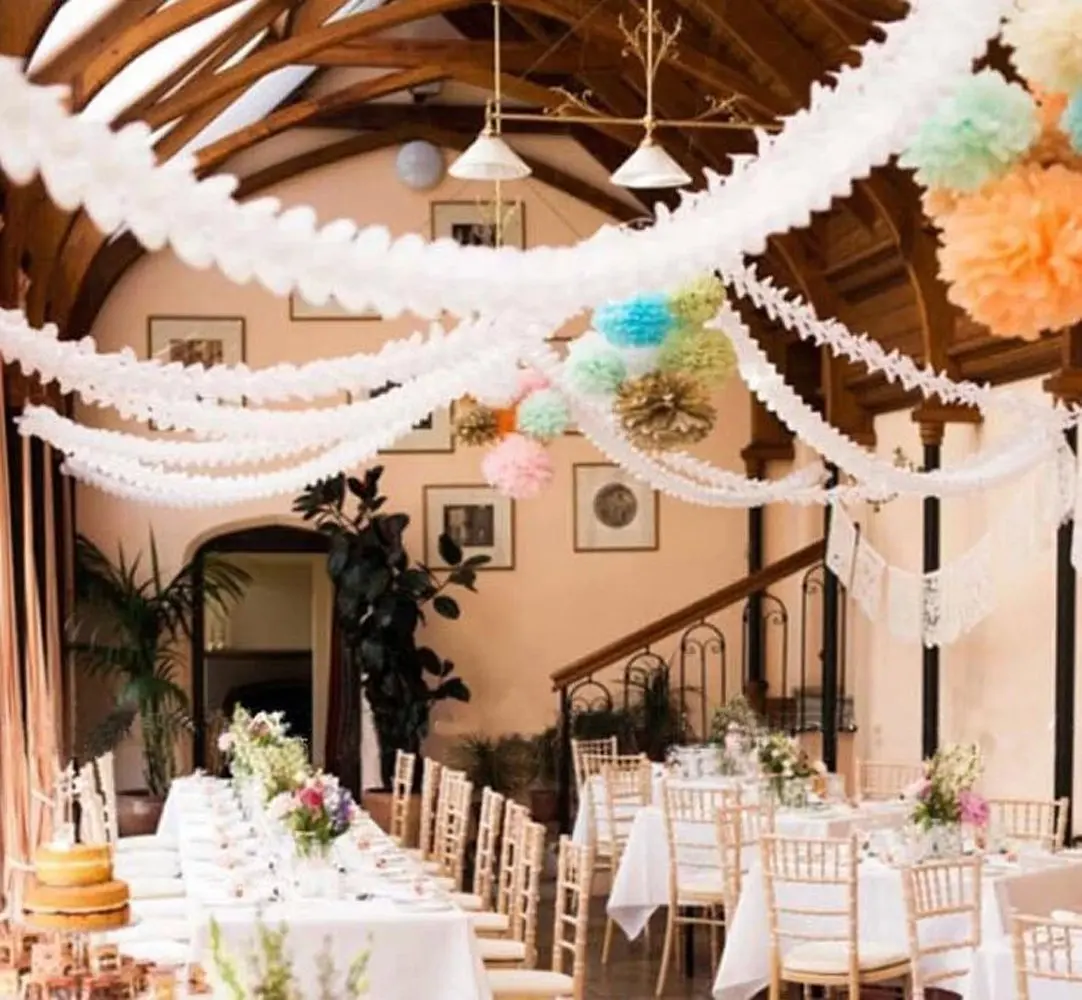 1 шт., 3 метра, Бумажная гирлянда с цветами