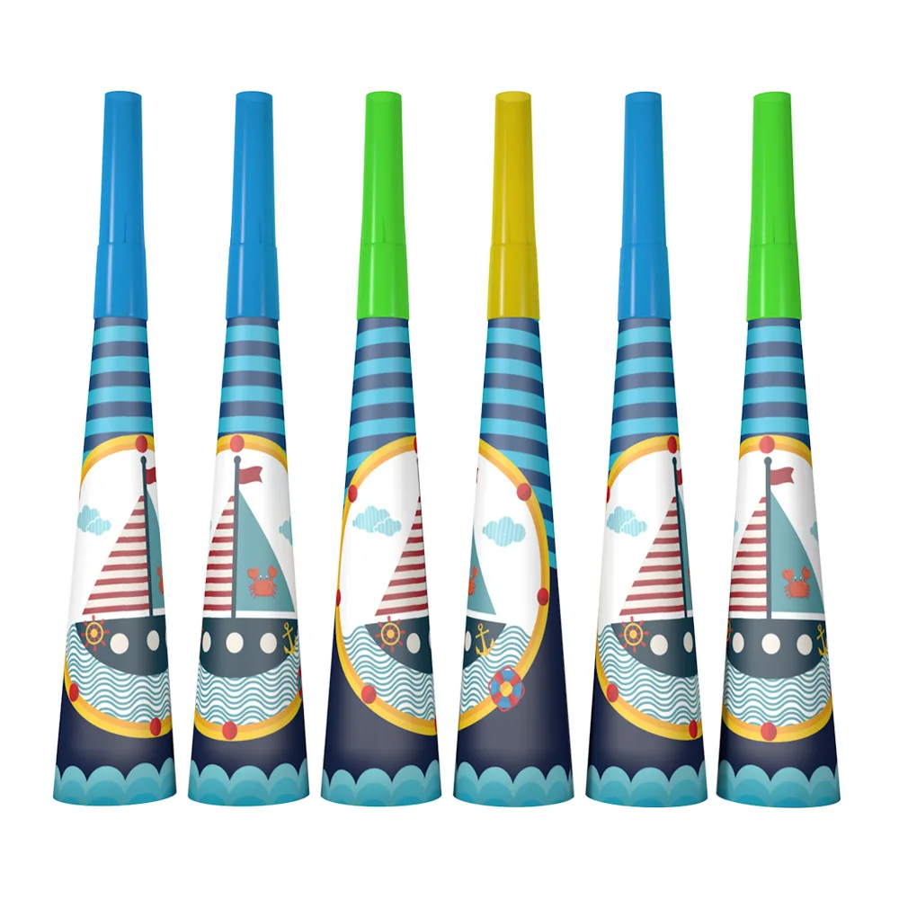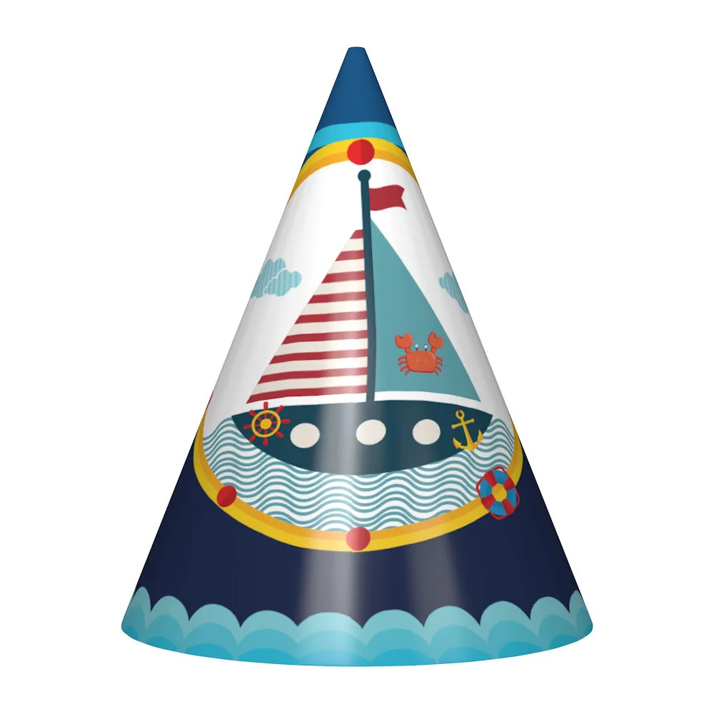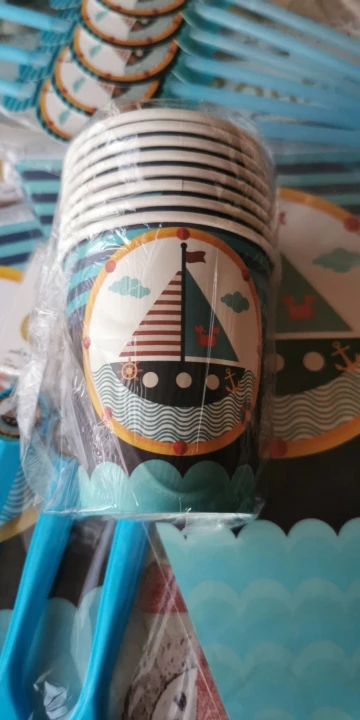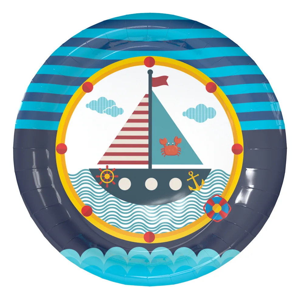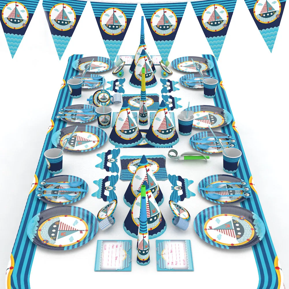 Набор посуды морской тематики для детей, украшение для дня рождения, морская синяя лодка, бумажные тарелки и стаканы, парусник, праздничные принадлежности