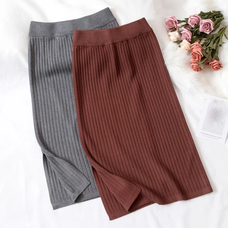 Вязаные длинные юбки, Женская Осенняя бандажная юбка-карандаш, женс...