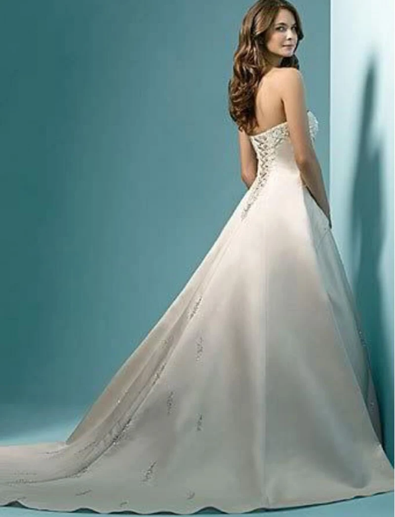 Свадебные платья без бретелек, ТРАПЕЦИЕВИДНОЕ атласное кружевное платье принцессы со шлейфом, Цвет Белыйслоновой кости, 2022