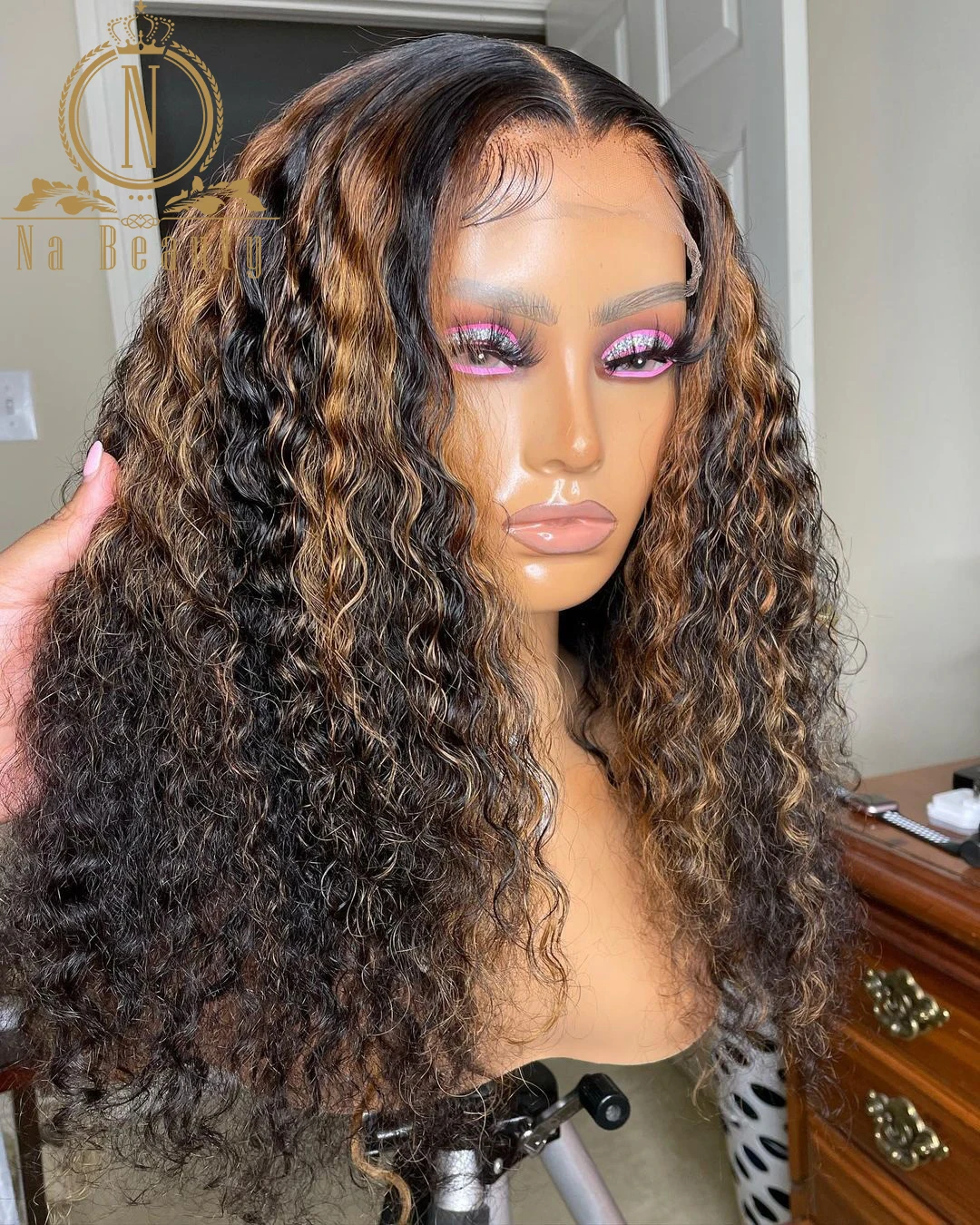 Медовая Блондинка хайлайтер кудрявый парик T часть кружева человече...