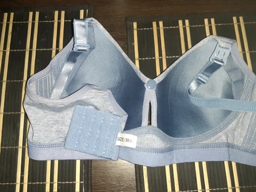 Хороший бюстгальтер. Мягкий, приятный. Обхват под грудью 80, взяла 36 размер. Но смело можно 34 было брать, тк застегиваю на самые первые крючки+ещё дополнительные в цвет положили. Обхват груди 87, Место для роста груди ещё осталось, сейчас беременна, 8 мес.