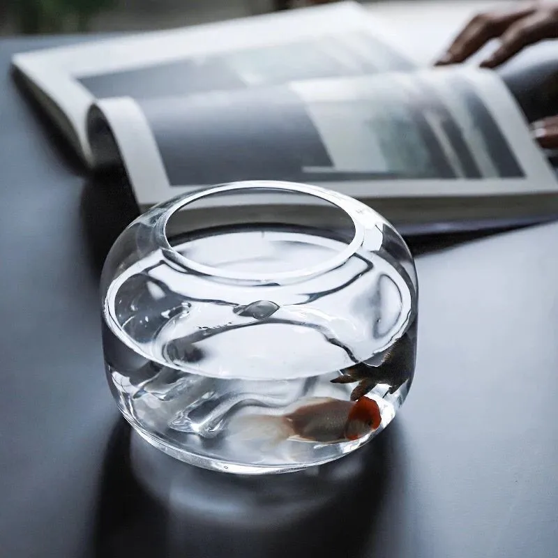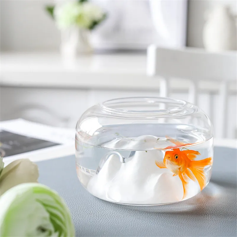 Прозрачный стеклянный аквариум Snow Mountain, миниатюрная миска для рыбы, для золотой рыбы, для румян, рыбы, домашний декор для гостиной, День святого Валентина