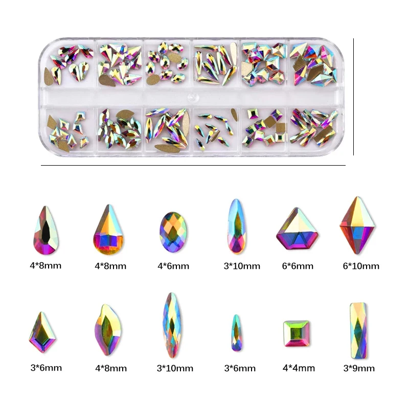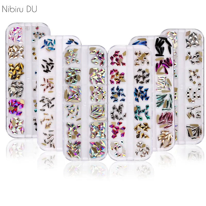 120 шт.коркор. красочные кристаллы AB Стразы для дизайна ногтей отправляют Пинцет разные формы блестящие камни 3D кристаллы DIY украшения для дизайна ногтей