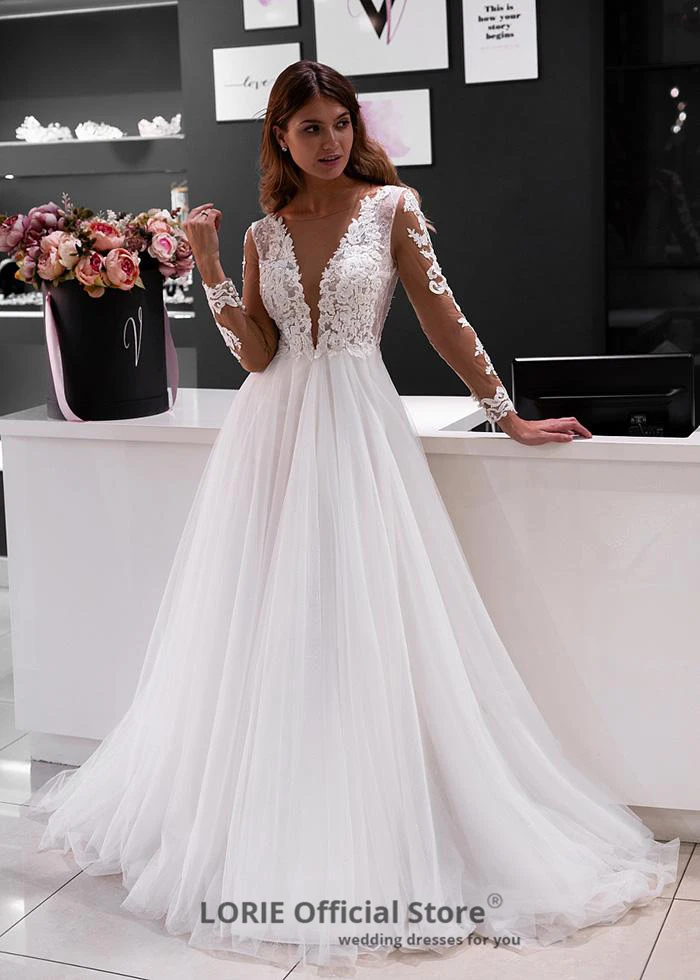 Элегантное кружевное свадебное платье LORIE с аппликацией, свадебные платья с длинным рукавом, женское платье в стиле бохо с V-образным вырезом, цвет белой слоновой кости