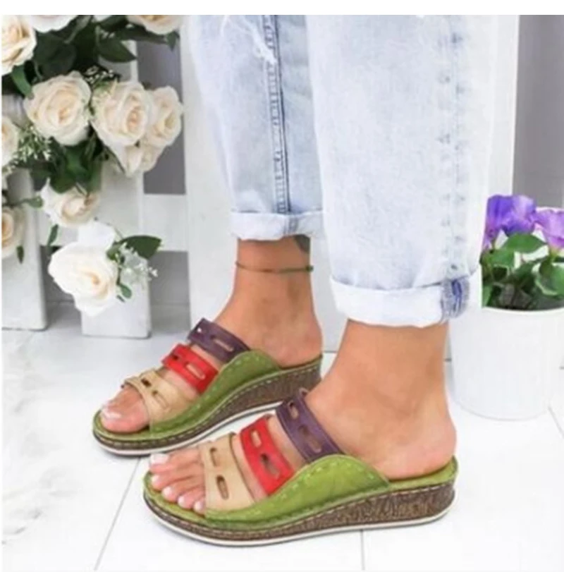 Новинка; Летние сандалии для женщин; Обувь в стиле ретро без застежки; Женские сандалии из пробковой кожи; Пляжные шлепанцы; Сандалии-гладиаторы; Женские вьетнамки