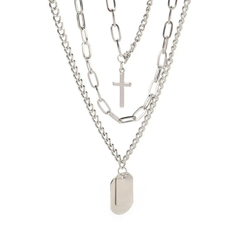 Многослойная цепочка в стиле панк, хип-хоп, индивидуальные ожерелья, женское модное геометрическое кубическое ожерелье крест, колье с подвеской, бижутерия для женщин