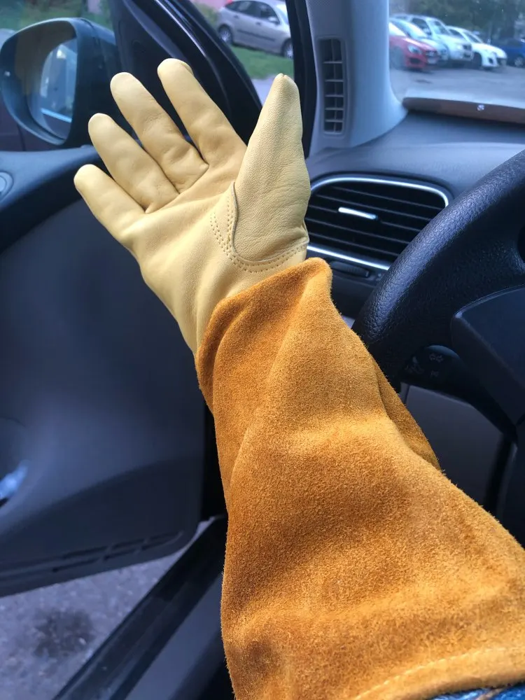 Как в описании. Очень быстрая доставка. Кожа очень мягкая и тонкая, она отличная, но я не уверен, защитит ли она от шипов роз. Определяется весной