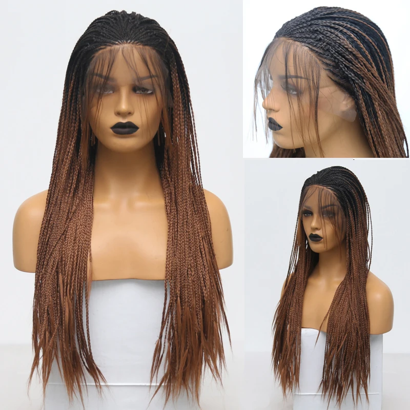 RONGDUOYI плетеный ящик косички парики для женщин высокая температура волокна синтетические кружева передний парик Омбре коричневый кружева парики косплей парик