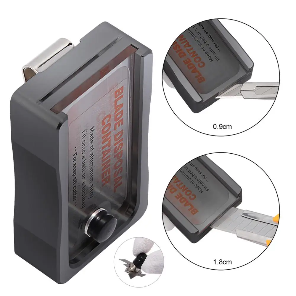 Посылка включает в себя:1 * чехол для удаления лезвия ножа(Алюминиевый сплав и пластик для опций.)*** Нож или лезвие не включены ***Параметры1. Материал: алюминиевый сплав, пластик2. Размер: 3,1*1,8*0,8 дюймов/8*4,6*2 см3. Цвет: темно-серый/желтый4. Тип продукта: отсоедините лезвия, храните использованные лезвия.Это полезный инструмент для обертывания автомобиля, ремесла, резьбы. Чехол для утилизации лезвий обеспечивает безопасный способ снятия с лезвия отходов, продлевает ваш нож.Особенности1. Он широко используется в 0,9-1,8 см в ширину лезвия, высокого качества алюминиевый сплав для эффективного обрыва.2. Магнитный Штепсель может отсасывать лопасти, гораздо безопаснее хранение.3. Снимите чехол с лезвия, сняв магнитную вилку, с простой установкой.4. Портативный чехол может поместиться на ремне или сумке для инструментов с небольшим креплением. Пластиковый контейнер легче, чем алюминиевый сплав, который гораздо легче взять.