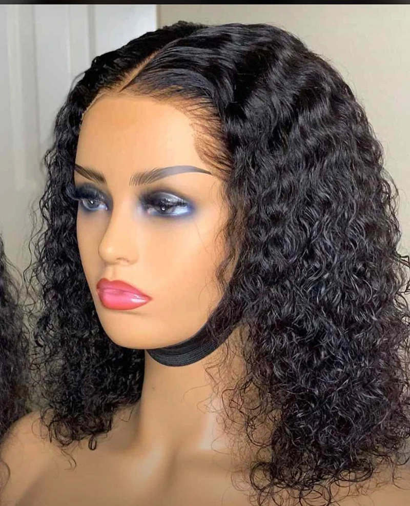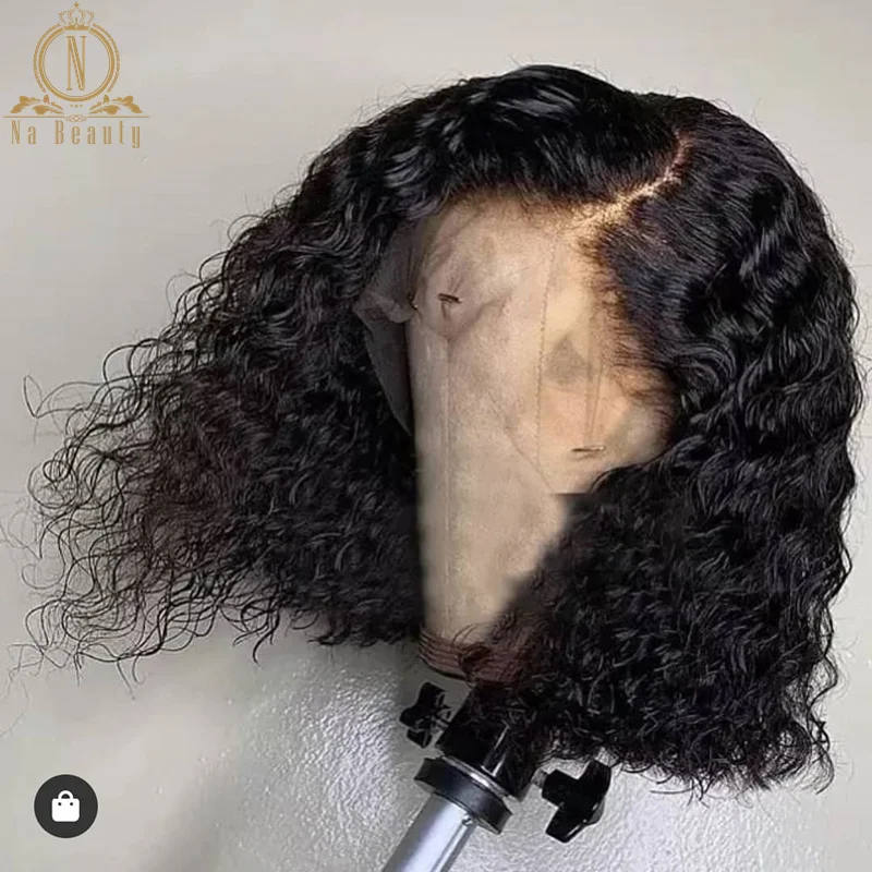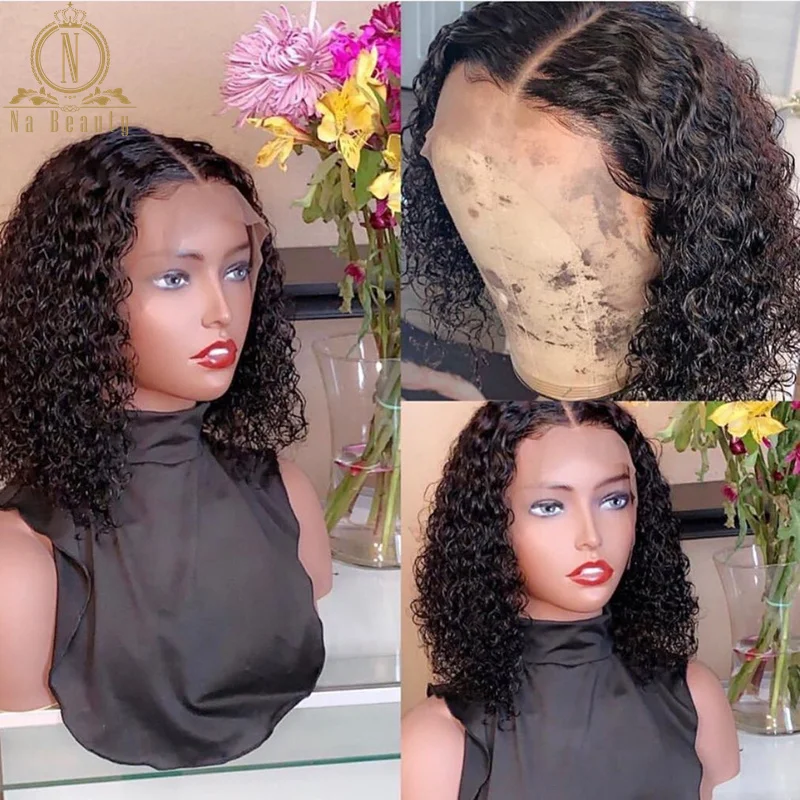 Короткие кудрявые 13x6 прозрачные парики на шнурке, парики боб для женщин, человеческие волосы Remy, кружевная застежка, предварительно выщипанные набивные волосы