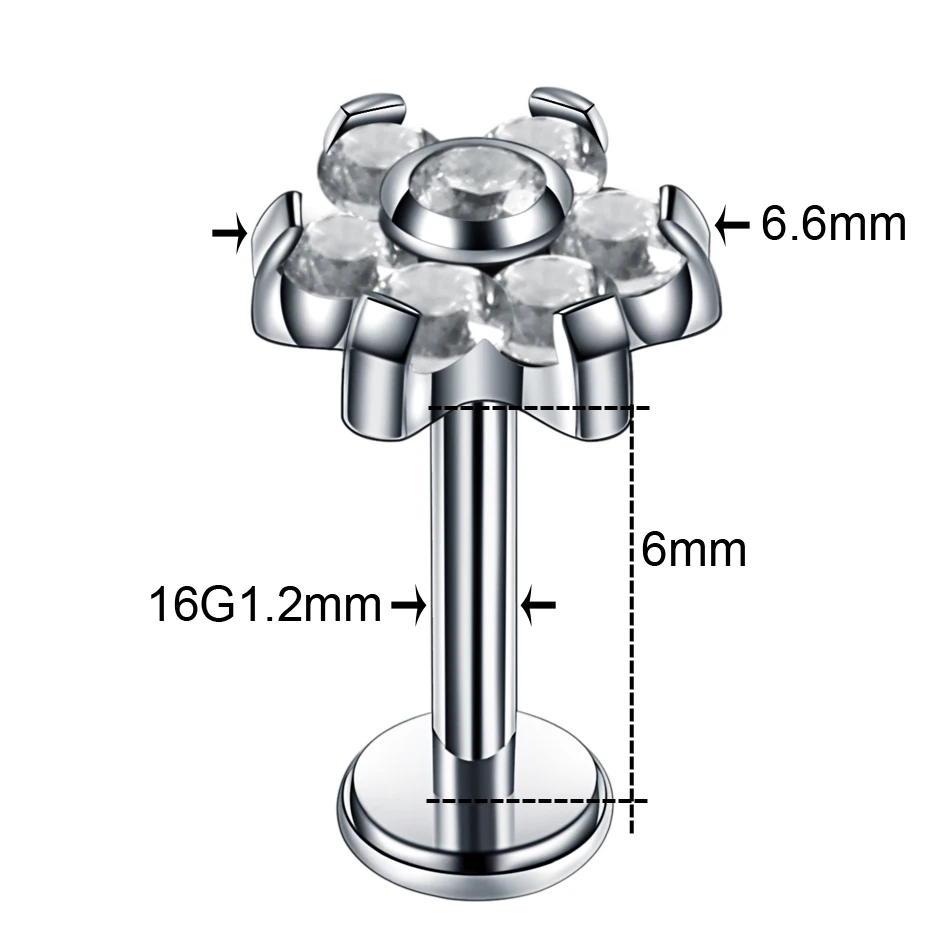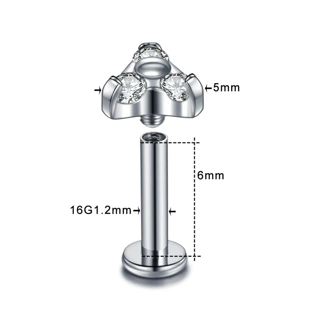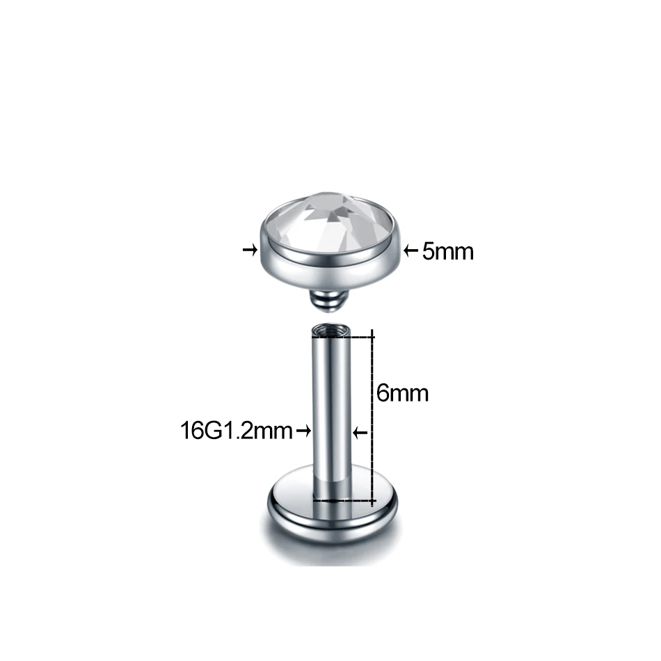 Кольцо для пирсинга с фианитом, для прокола козелка и завитка ушной раковины, пирсинг хряща, губ, 16 г, 1 шт.