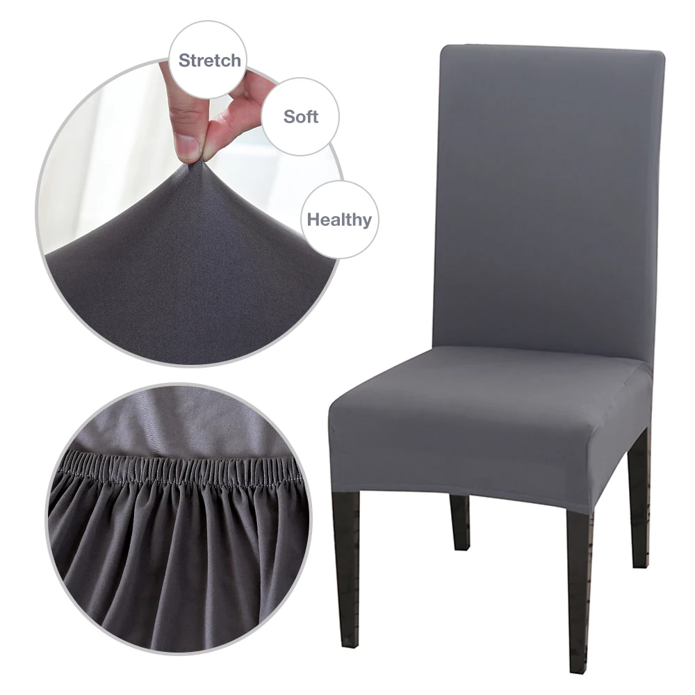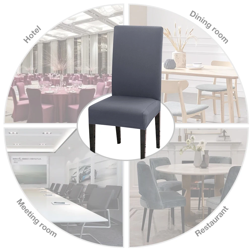 Полиэстер спандекс. Мягкий удобный и устойчивый к морщинкам Растягивающийся материал, растягивающийся, быстро восстанавливается, надежно прилегает к пришитой эластичной кромке. Эти чехлы для стульев с растягивающейся подошвой подходят для большинства домашних обеденных стульев Легко стирать и гладить Используется для отеля, свадебного банкета, ужина, встречи, торжества, церемонии, украшения семейной столовой и т. д.