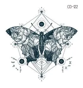 Водостойкая Временная тату-наклейка в виде бабочки, цветок, роза, и...