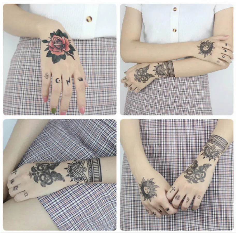Пикантная обувь с изображением цветка мандалы Водонепроницаемый временные наклейки-тату на руку большой школьный рюкзак со змеиным рисунком татуировки наклейки Flash поддельные татуировки для мужчин и женщин