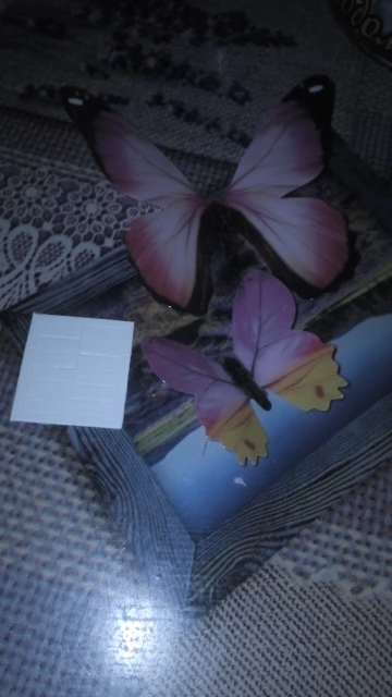 Отличные объемные бабочки с 3d-эффэктом, очень красивые, красочные, в пакетике есть инструкция и специальные стикеры, на которые можно наклеить на стену, крылья можно подогнуть как необходимо, из-за глянцевой поверхности смотрятся объемно.