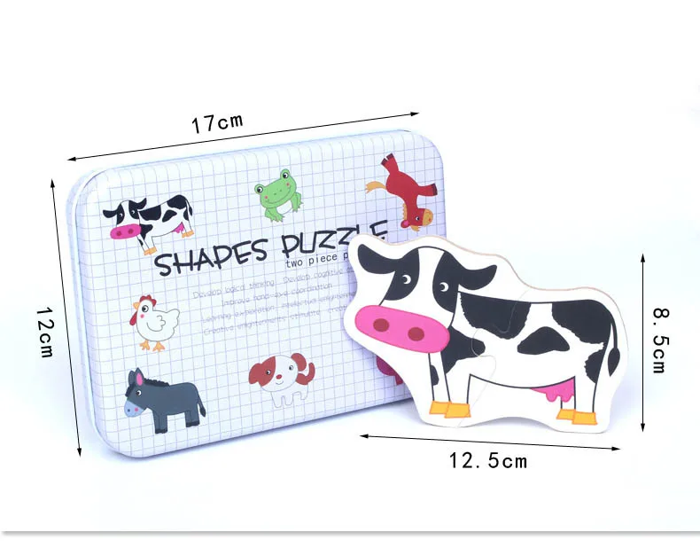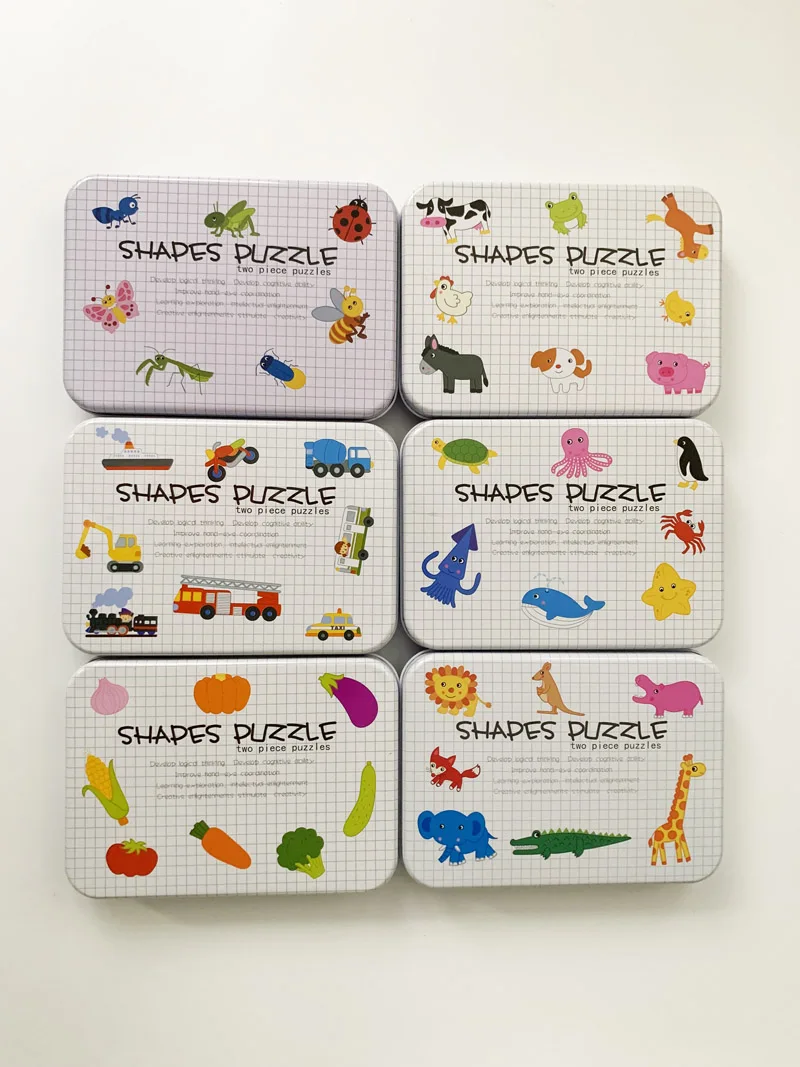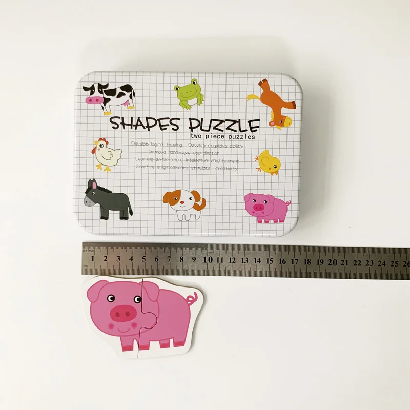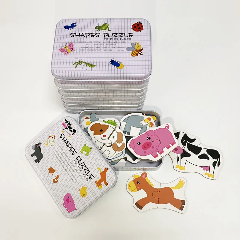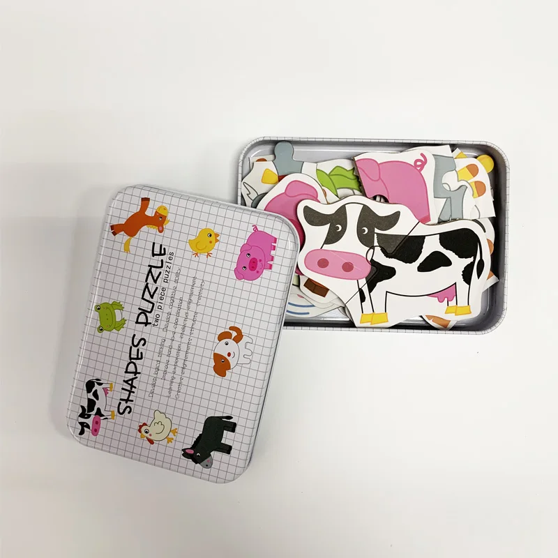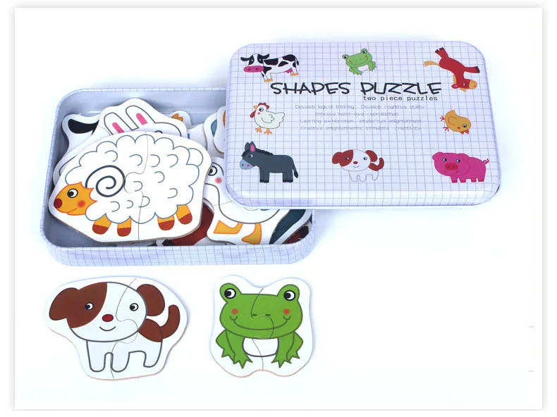 Пазл детский деревянный с животными, фруктами и металлической коробкой