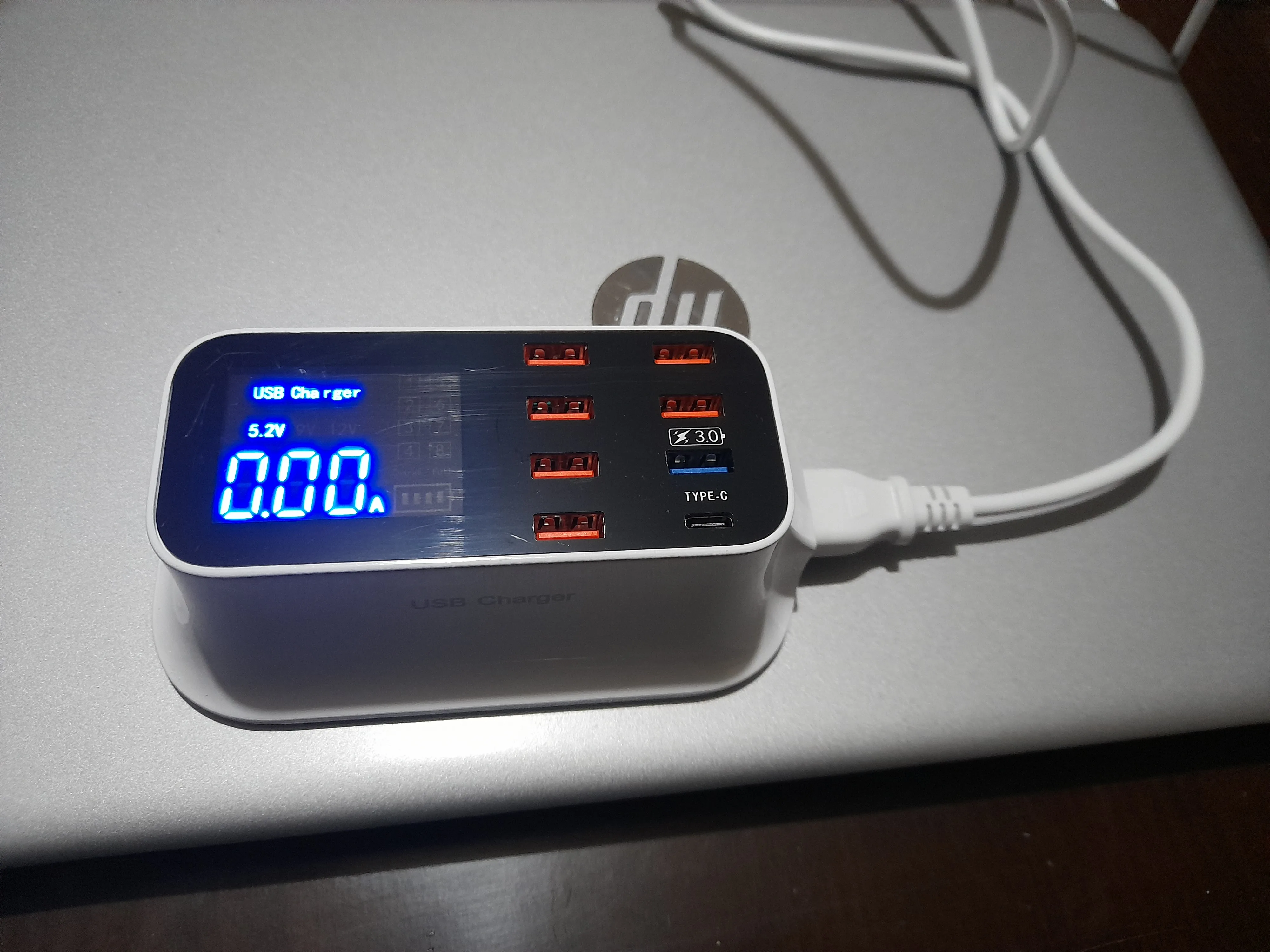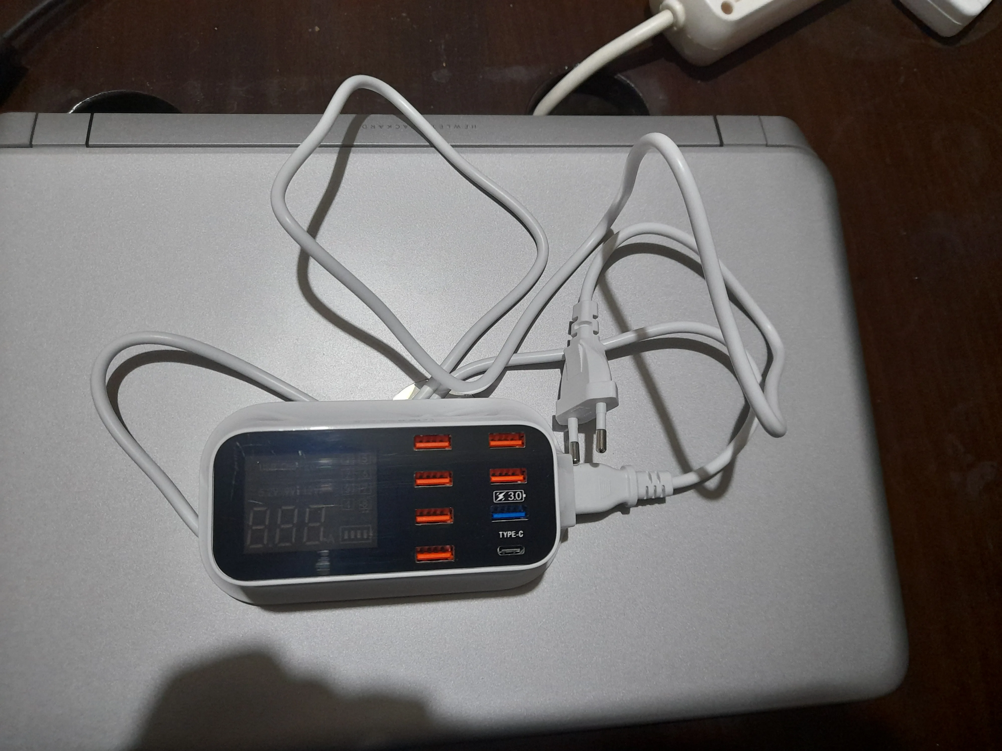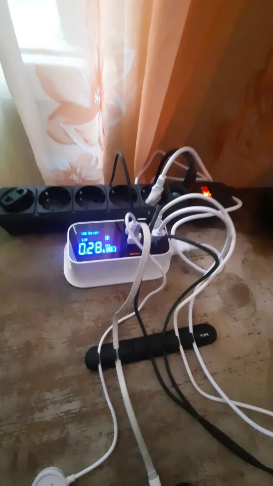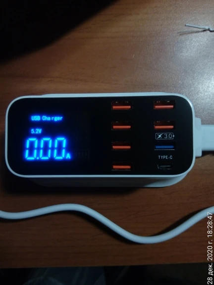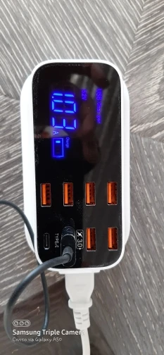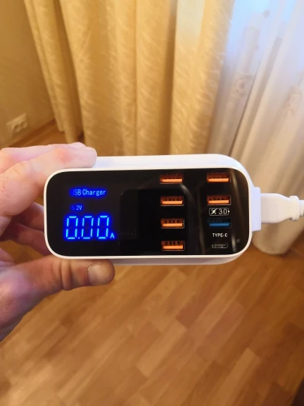 Отличная зарядка. Пробовал 3 телефона заряжать одновременно, тащит без проблем. Указывает ток зарядки каждого потребителя. Заряжает быстро. На дисплее 5.2 вольта. Ставил HONOR 20 Lite на зарядку, берет 1.45 А, по мере увеличения значения заряда, на телефоне, к примеру 80-95%, ток уменьшается. В общем отличная штука, теперь занята 1 розетка, вместо 4.
