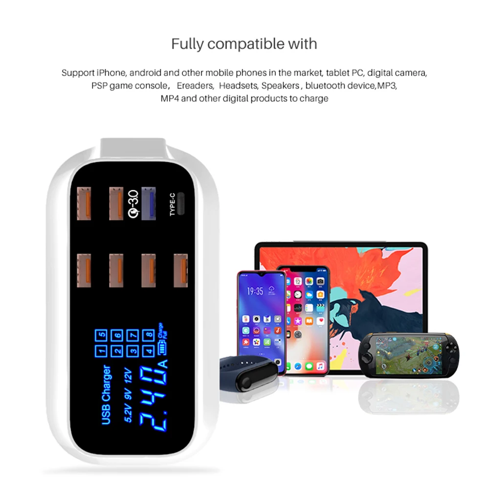 Очень хорошо Одно зарядное устройство и 8 портов. Очень удобно. Доставка также очень быстрая.