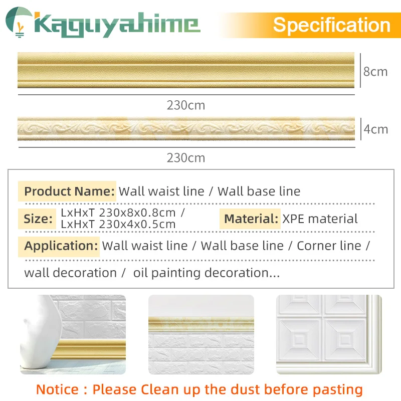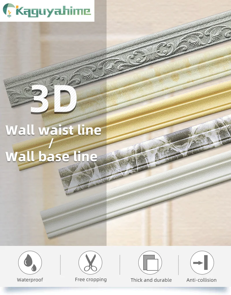 Kaguyahime 3D пенопластовая линия для талии, водостойкая граница, самоклеящаяся, 2,3 м, верхняя угловая линия, сделай сам, настенная кромка, декоративная лента, наклейка на стену