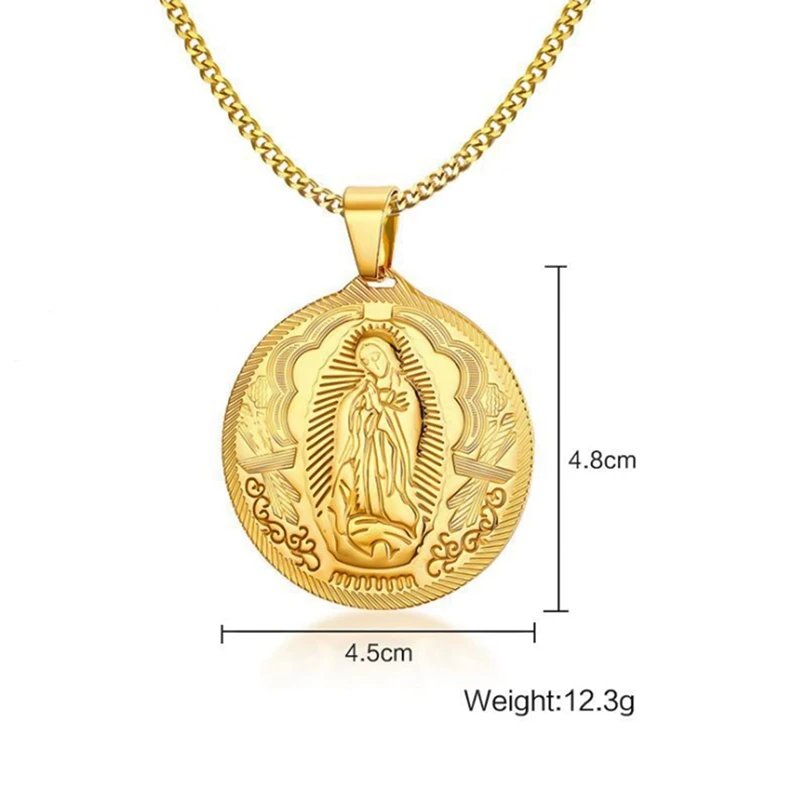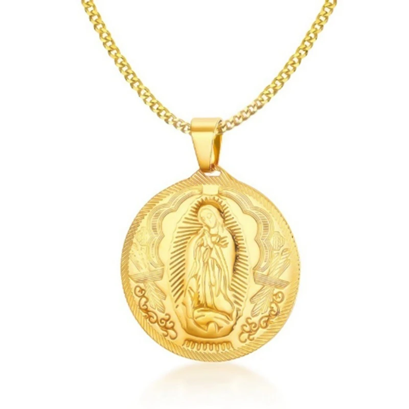 Медали Богородицы гуадалупа для мужчин, ожерелье с кулоном, золотистый тон, Дева Мария, медали покровителя, мужские ювелирные изделия