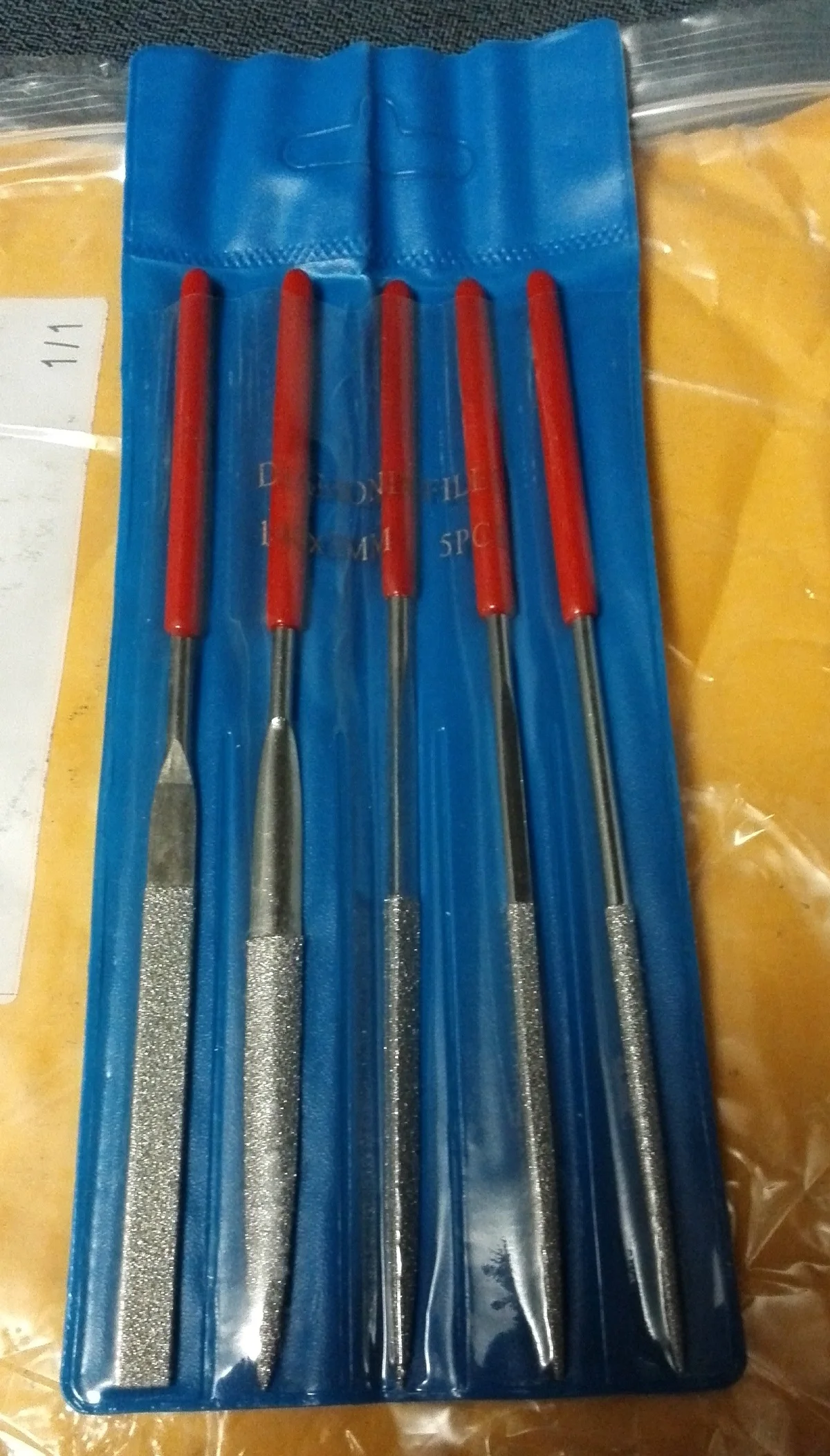 Заказ оформил 24.07.2021, доставили почтой в Самарскую область 14.08.2021 в объединенной посылке. Упаковка - пакет и мягкий полимерный футляр с ячейками. Доставка отслеживалась. Товар описанию соответствует, хорошего качества. Работать удобно, надфили к износу устойчивы. На мой взгляд, этого набора из 5 штук разной формы (сечения) вполне достаточно для нечастого домашнего использования. Пробовал по инструментальной стали - почти не осыпаются. Купил за 253,33 ₽. Покупкой доволен, товар и продавца рекомендую.