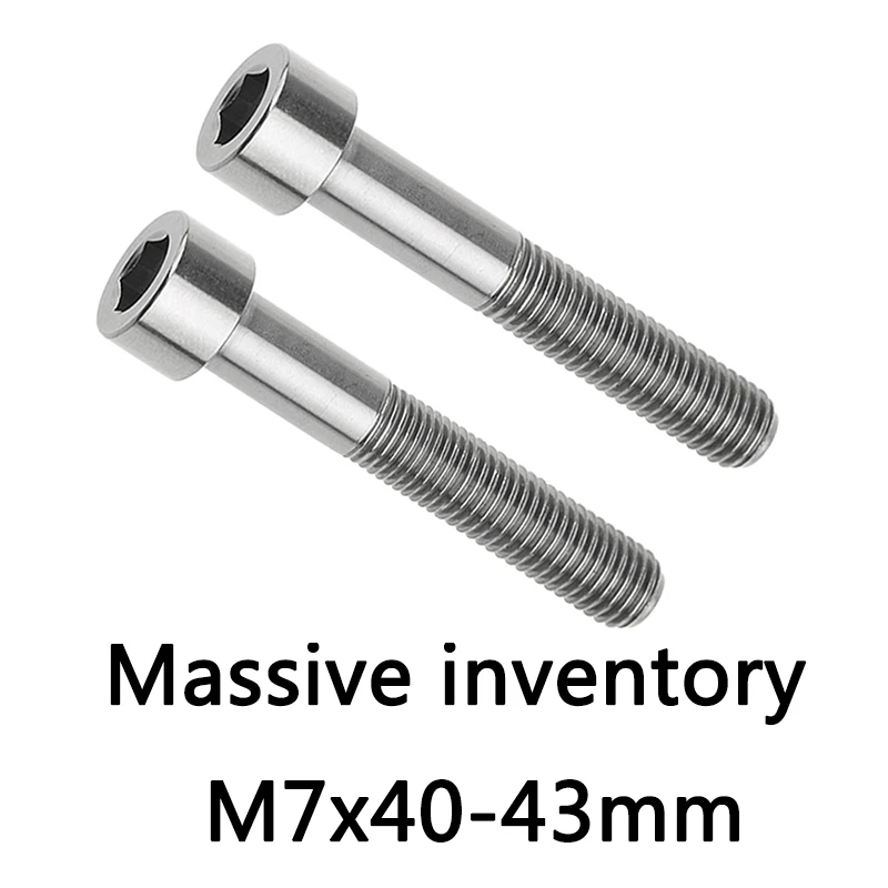 Бренд: XingXiРазмер: M7x 40 43 ммМатериал: 6AL/4В (TC4) титановый сплав, класс 5Размер гаечного ключа: Используйте 5 мм шестигранный ключДиаметр резьбы: 7 ммШаг: 1 ммДиаметр головки: 10 ммВысота головки: 7 мм (m7x43мм)6,1 мм (m7x40 мм)Посылка: болт 1xM7