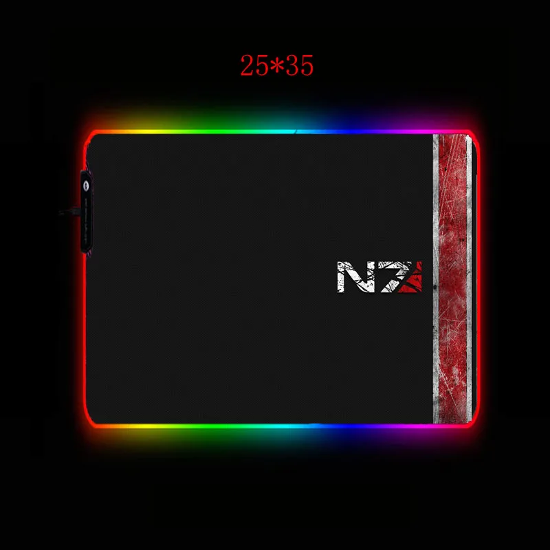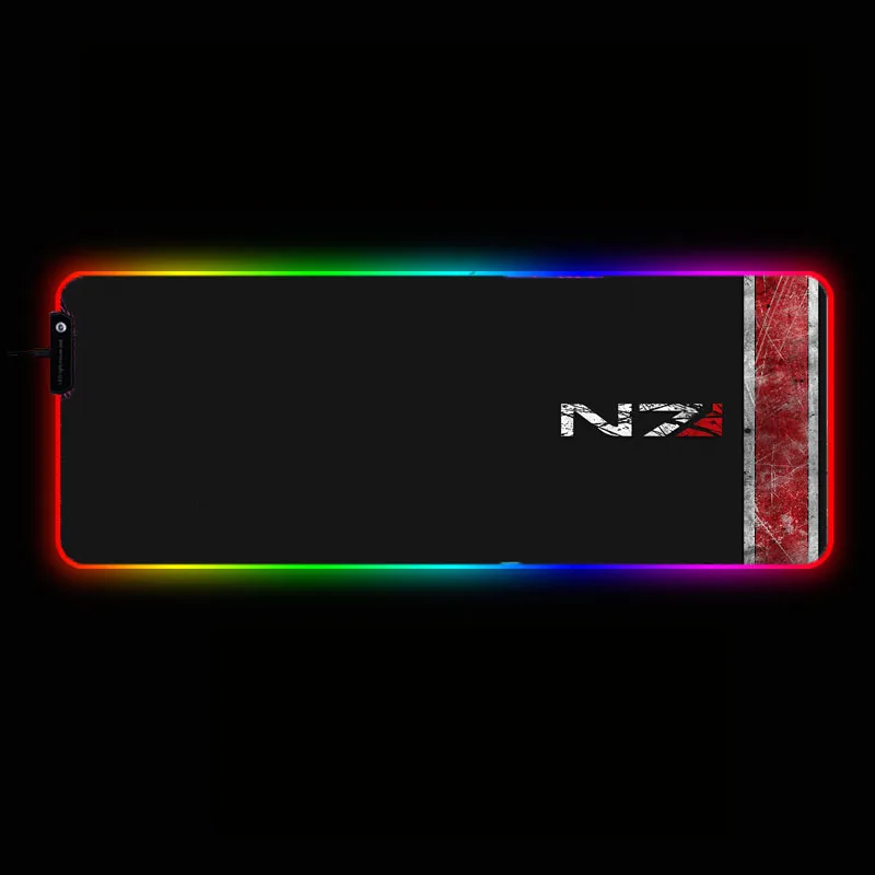 Игровой коврик для мыши Mairuige Mass Effect N7 RGB, большой компьютерный геймерский Настольный коврик для клавиатуры с подсветкой