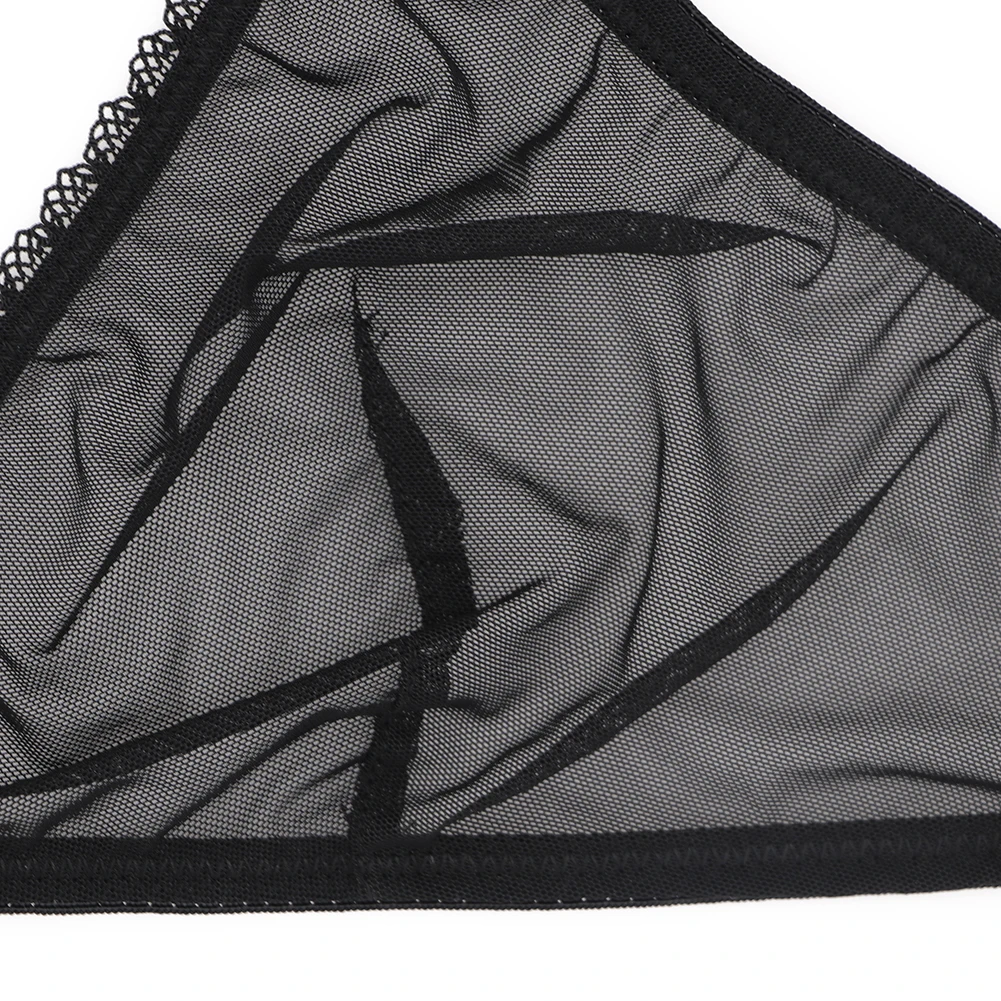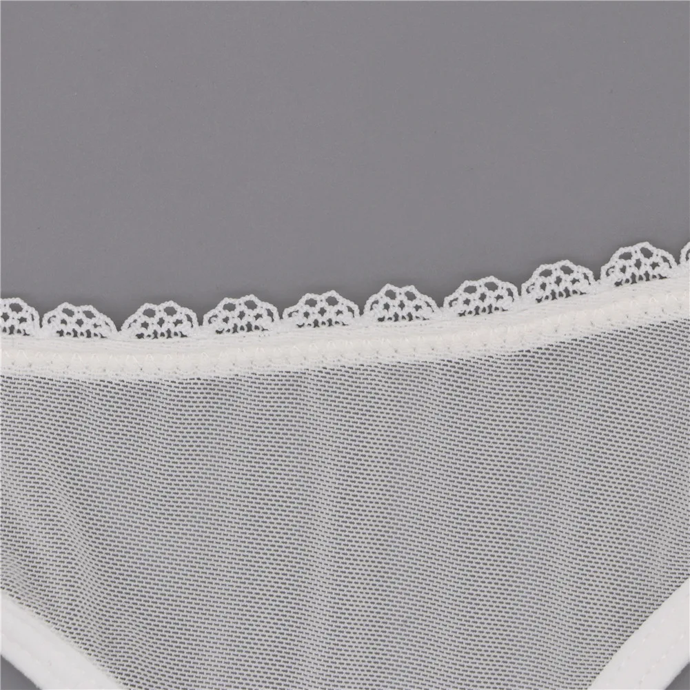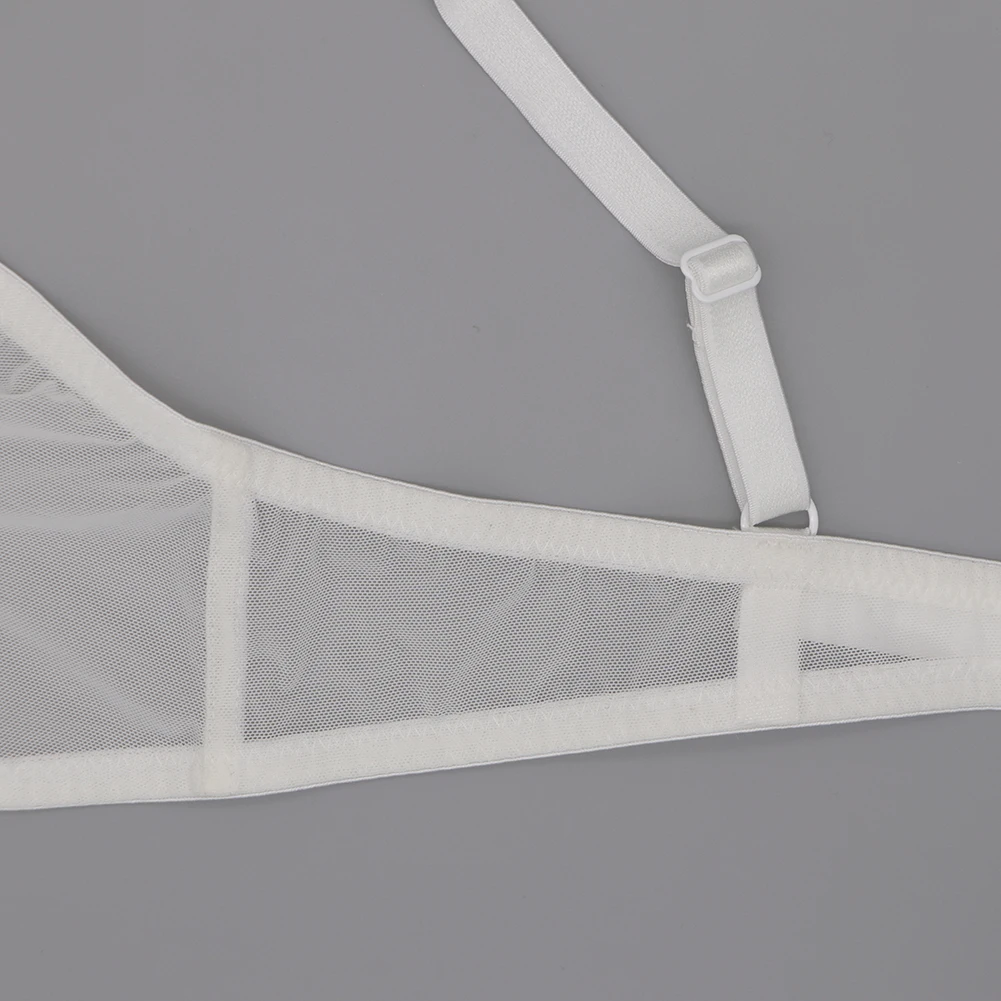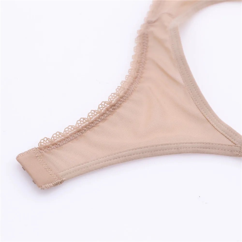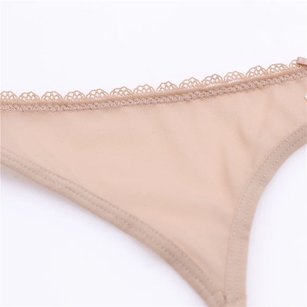 Комплект женского нижнего белья из бюстгальтера, стрингов, подвязки и чулок, прозрачный, без косточек, с глубоким V-образным вырезом