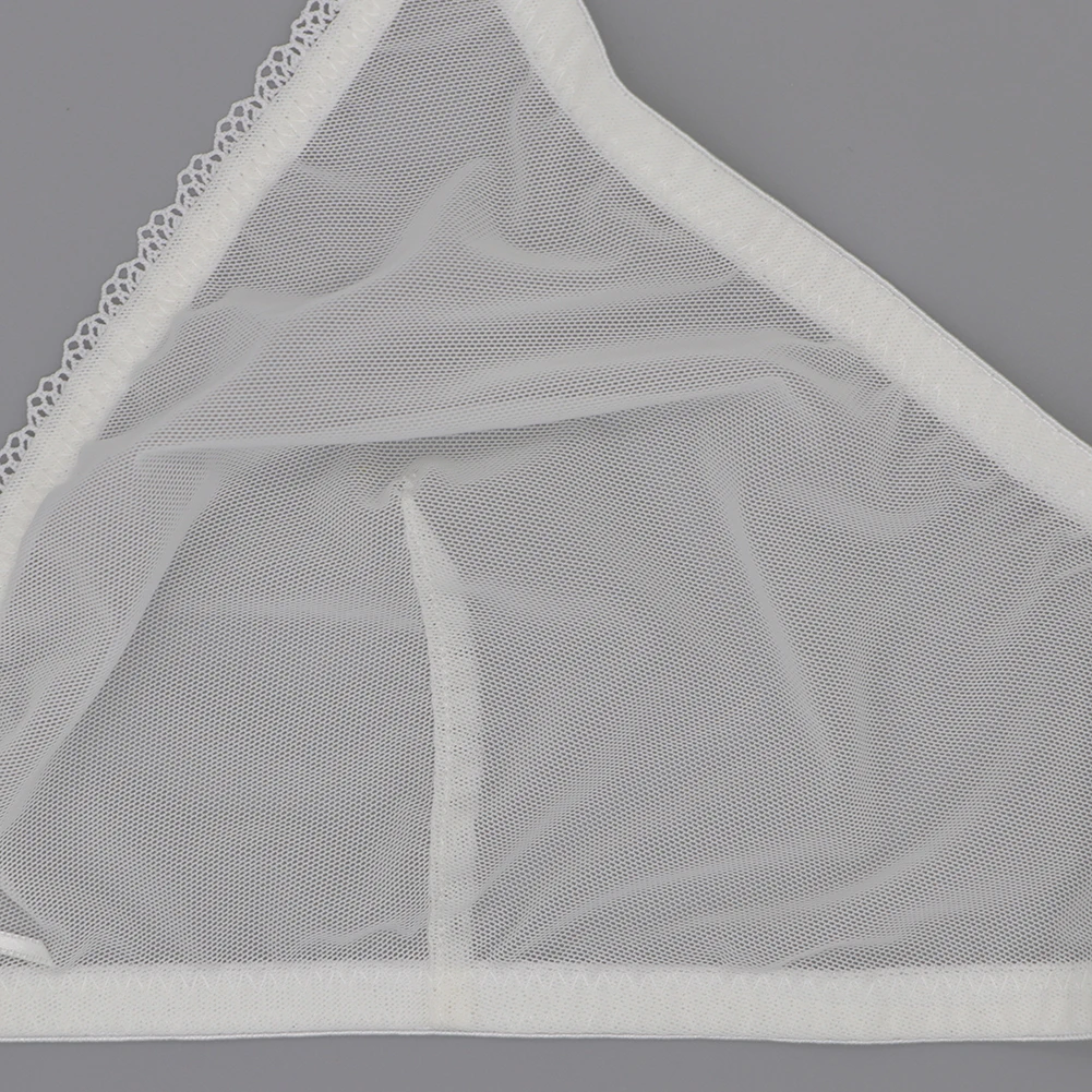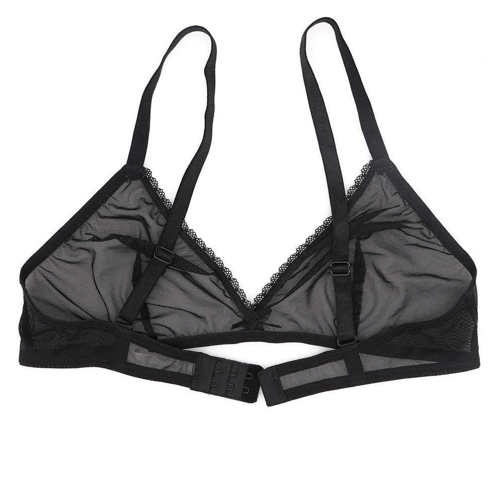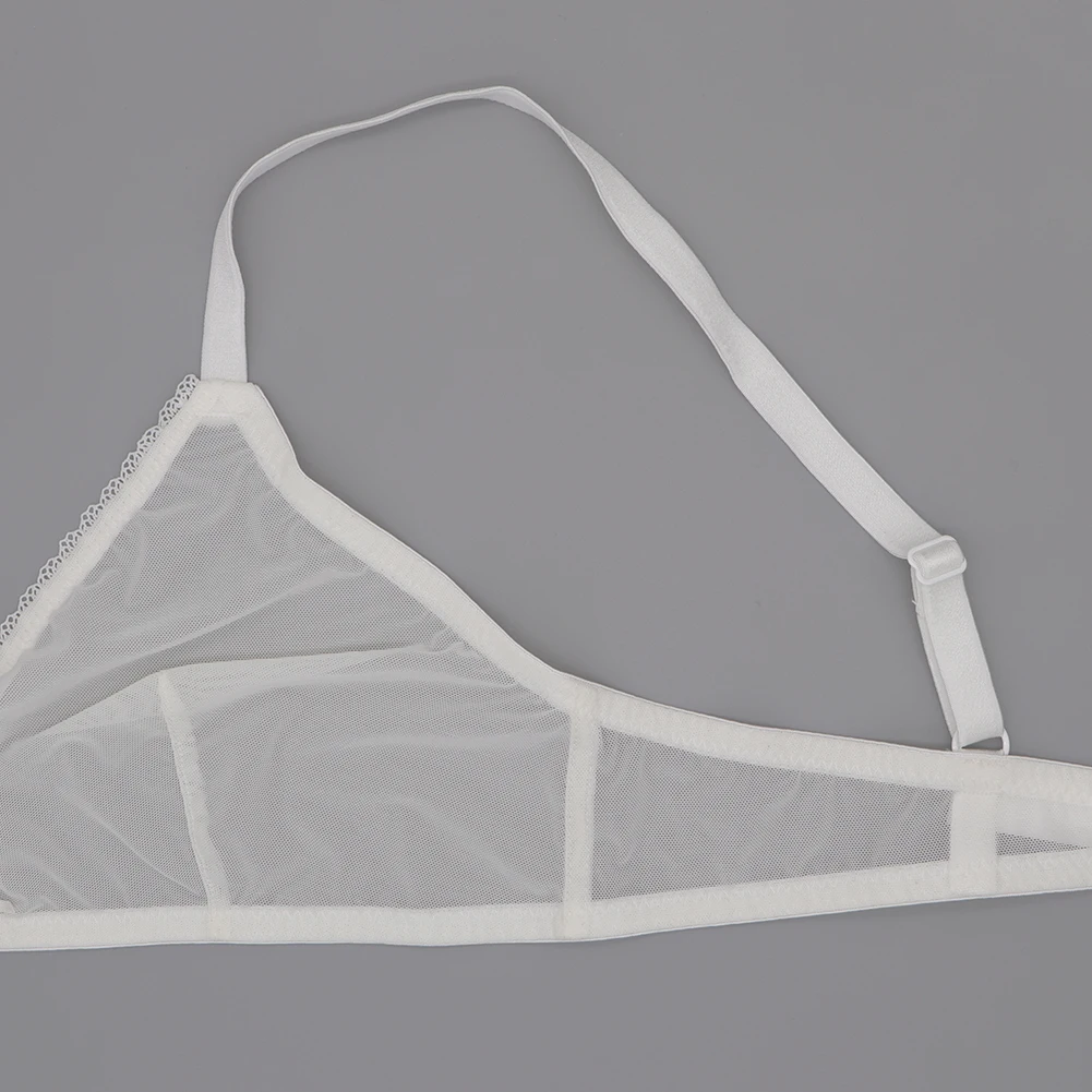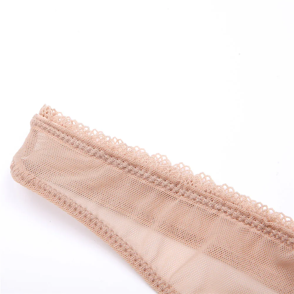 Комплект женского нижнего белья из бюстгальтера, стрингов, подвязки и чулок, прозрачный, без косточек, с глубоким V-образным вырезом