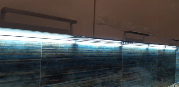 Заглушки пластиковые очень хлипкие, корпус из очень тонкого алюминия, рассеиватель нормальный. Одна из планок не держится в пазах корпуса, при повторном включении видимо сгорел выпрямитель (MB10F) в обеих планках, светильники соединял последовательно. Смотрите сами, судите сами. Светит очень ярко с матовым рассеивателем.