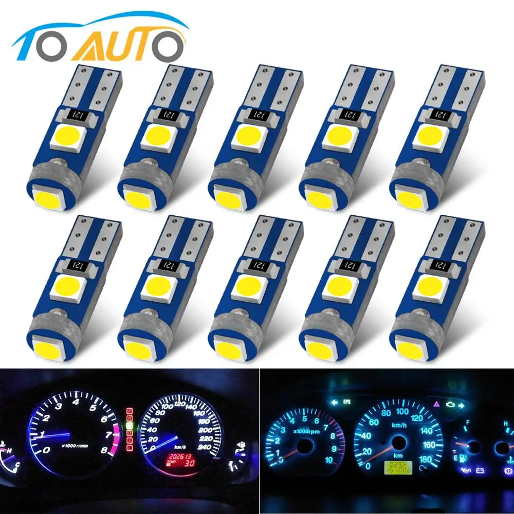 Светодиодная лампа T5 3SMD 3030, суперъяркие чипы W3W W1.2W, лампа для приборной панели автомобиля, Индикатор нагрева, клиновый светильник, 12 В, 10 шт.