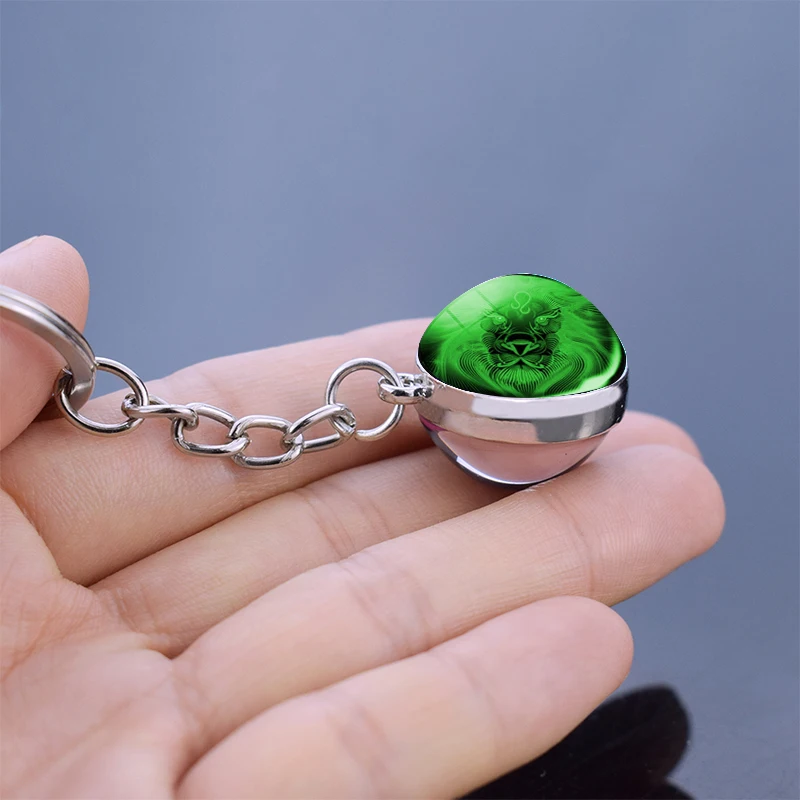 Брелок со стеклянным шаром тигра светится в темноте, ювелирное изде...