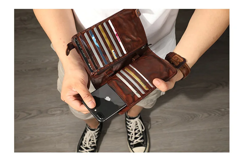 Мужская винтажная кожаная сумка-Кроссбоди AETOO с отделением для нескольких карт
