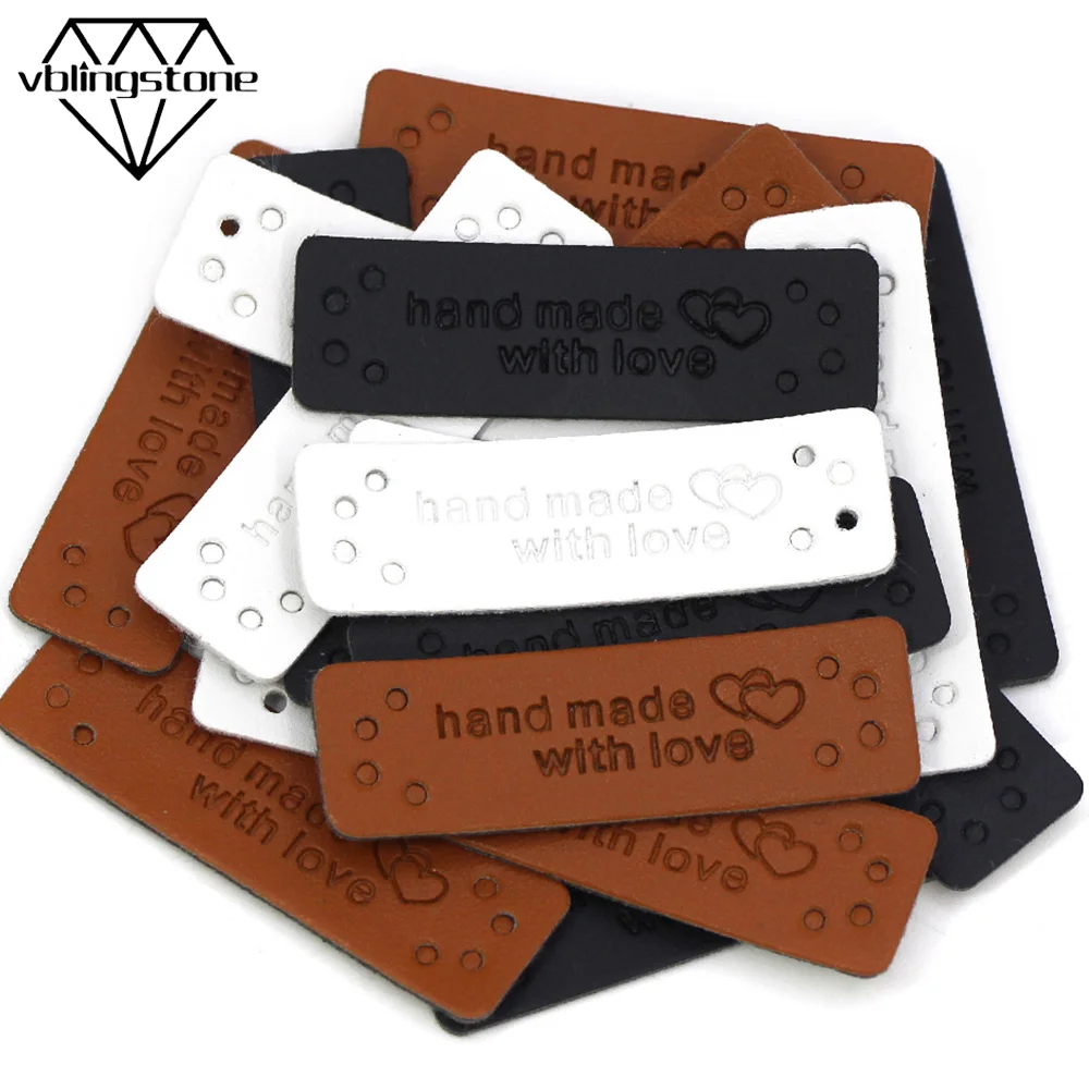 Бирки ручной работы из искусственной кожи с сердцем, бирки для вязания одежды, швейные этикетки для одежды, поделки, подарочное украшение, 50 шт.