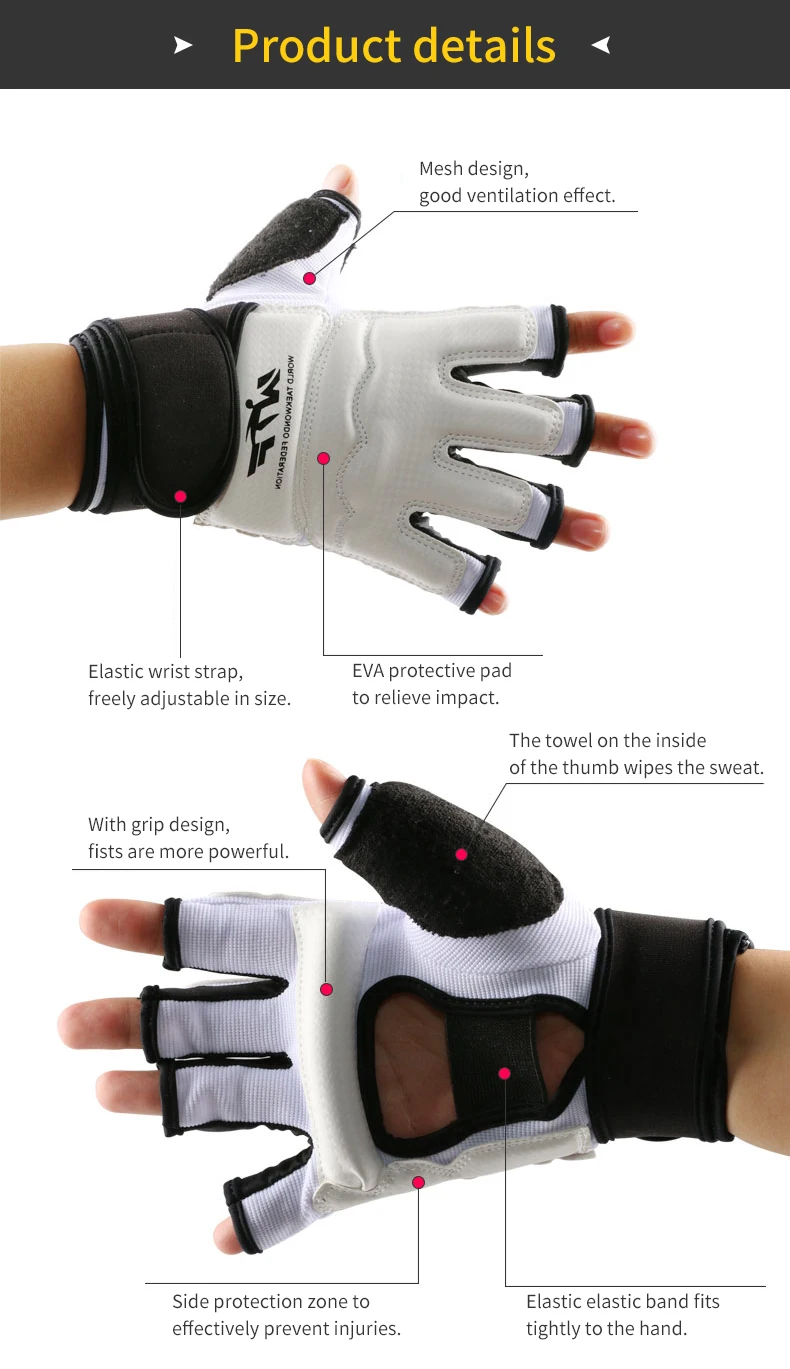 1 пара защитные перчатки для тхэквондо, перчатки с полупальцами, за...