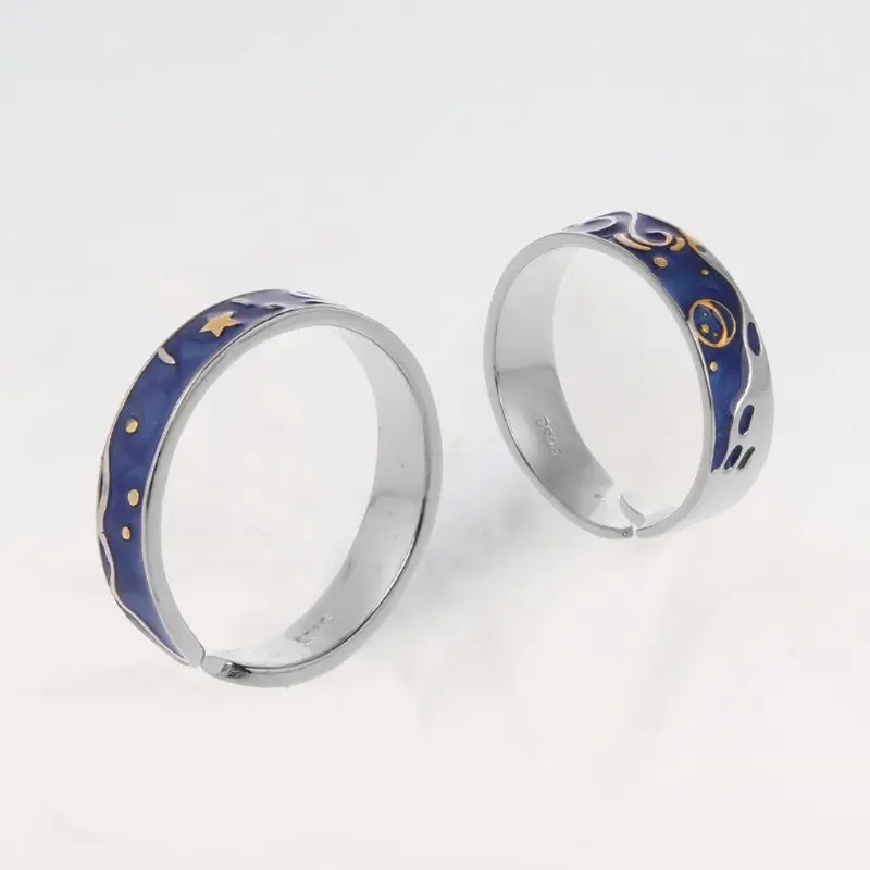 2 шт. S925 покрытием Ван Гог синего цвета ювелирные изделия из жемчуга медные в технике перегородчатой эмали "Звездное небо" открыть Lover кольца