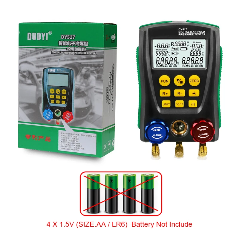 DY517 коллектор цифровой манометр Холодильный вакуумный манометр тестер HVAC температурный тестер
