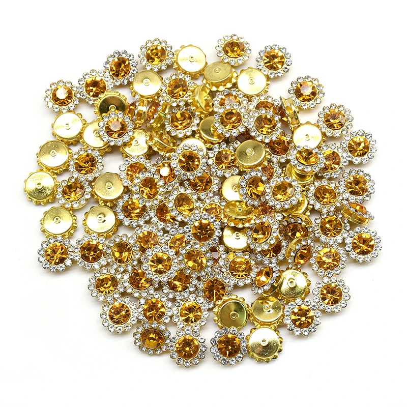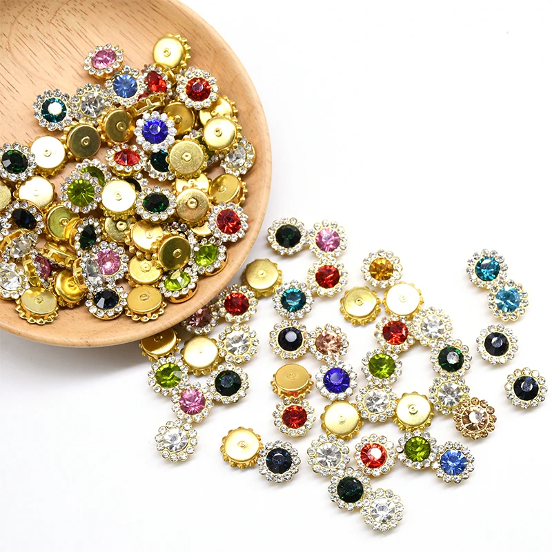 Стеклянные стразы в форме когтей, со стразами, Блестящие кристаллы, с отделкой, Золотая основа, пришивные стразы для одежды, аксессуары для шитья сделай сам, 100