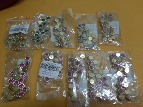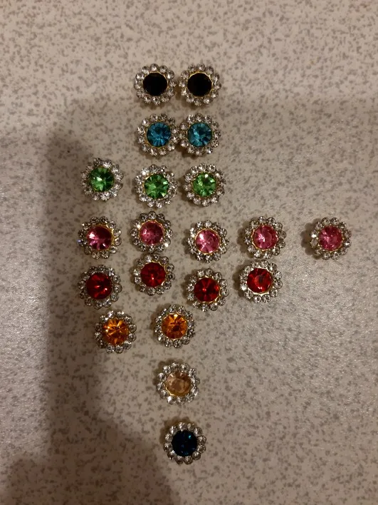 отличные стразы, описание точное, диаметр 1,1 см. все 100 шт, все целые.
