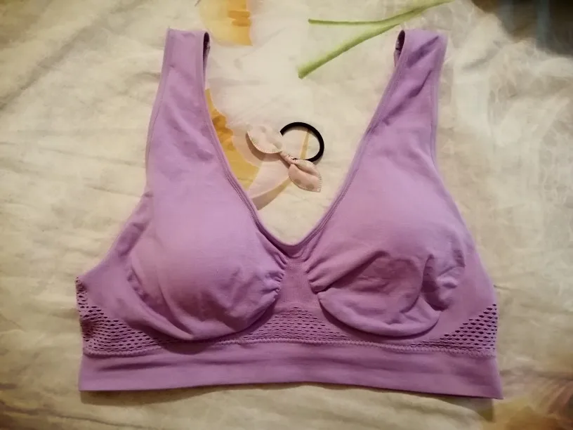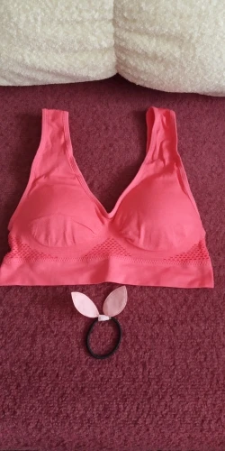 Хороший бюстик, не для спорта конечно, но для ежедневной носки подходит чудесно. На свой 48 размер взяла хл, сел прекрасно. Вставки можно извлечь при желании. Качество порадовало. Доставка быстрая. В подарок положили резиночку для волос. Рекомендую.
