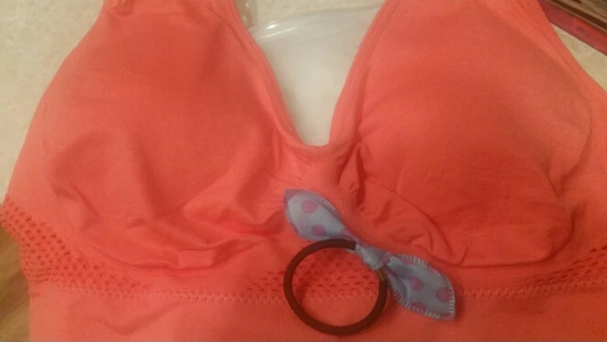 Бюстгальтер супер! На ОГ 134 см чуть тесноват, но при этом нигде не давит, удобный и, думаю, конечно растянется немного погодя. )) Так что у кого ОГ больше, чем 134 см, лучше посмотрите в другом магазине. Продавцу спасибо большое за быстрое реагирование и милый подарочек (резинку с сердечком для волос), это так приятно!