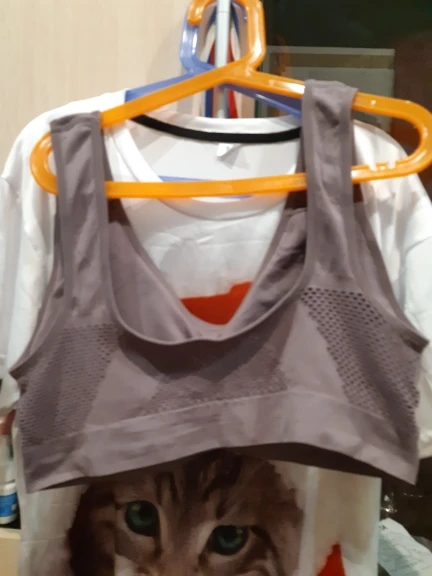 Ношу 50-52,xxxl нормально,если не хотите чтоб прям плотненько сидел. Мне в нем комфортно, но можно было поменьше взять. Есть тонкие чашечки. Продавец кладёт в подарок резинку для волос. Хороший топ, но для занятий спортом он не подойдёт, если грудь больше 1-2 размера.