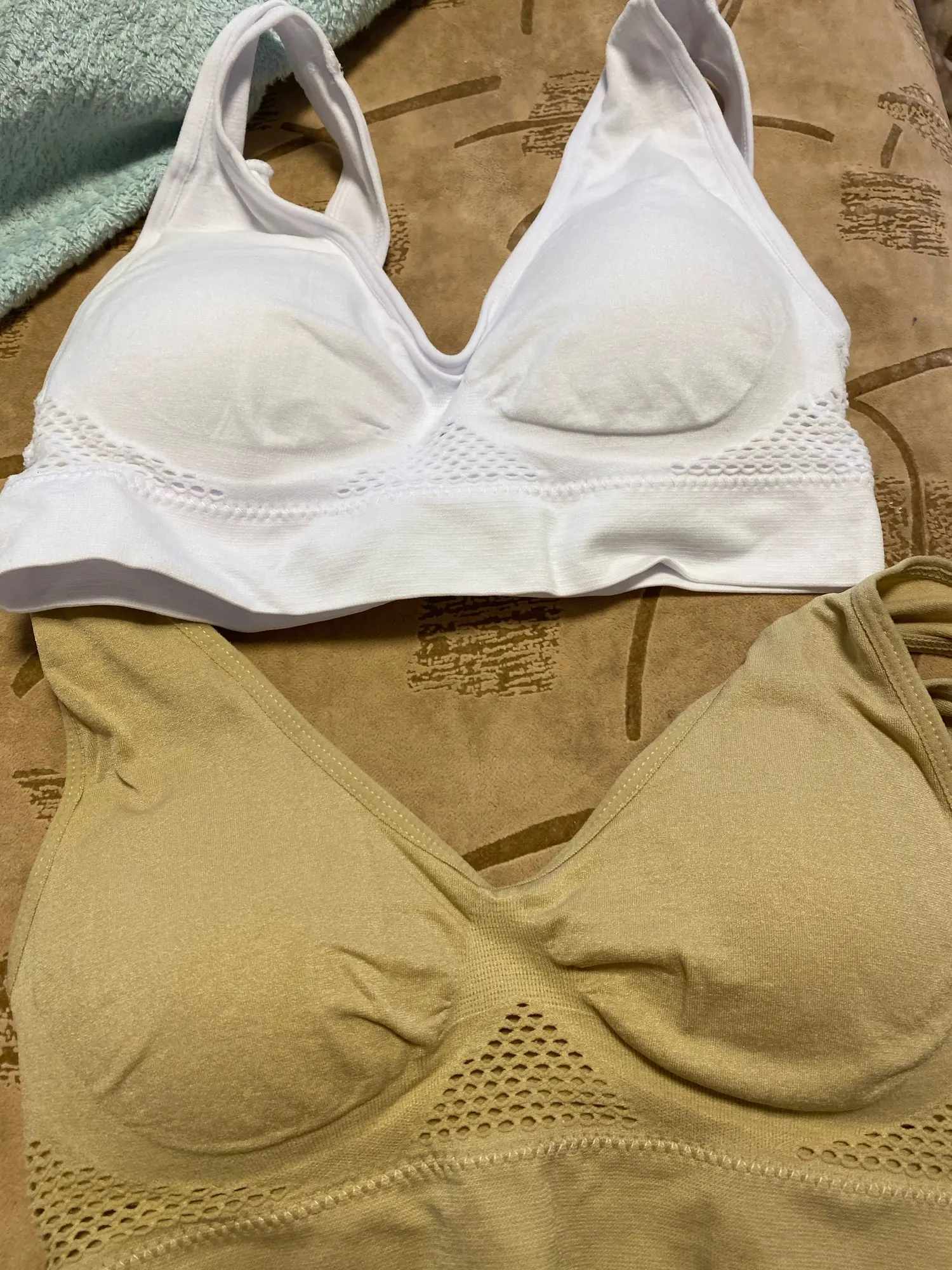 Доставка превзошла все ожидания - 7 дней! Заказала одного размера и с сеткой и без. Бюстгальтеры удобные. Модель без сетки мне показалась более удачной. По размеру 3х на объём 93/110 как раз. Разницы по размерам между моделями не заметила. Только для спорта и ношения дома, о форме груди в данных моделях говорить не приходится. Продавца и товар рекомендую! Спасибо!