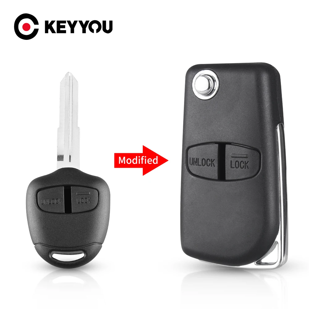 Откидной корпус KEYYOU, 3 кнопки, модифицированный чехол для дистанционного ключа от машины, для Mitsubishi Lancer ASX Grandis Evolution Outlander, правыйлевый