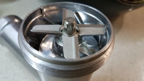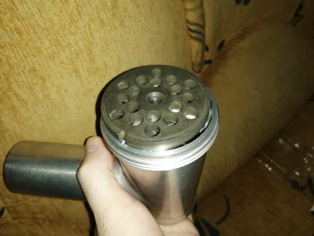 Сделано вполне добротно - не фирменное конечно. В мясорубку встал как родной, заточка присутствует.