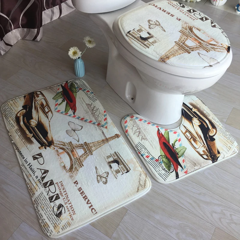 3 шт.компл. Набор ковриков для ванной комнаты, фланелевый Противоскользящий коврик для ванной комнаты, моющийся кухонный коврик для ванной, набор ковров для унитаза