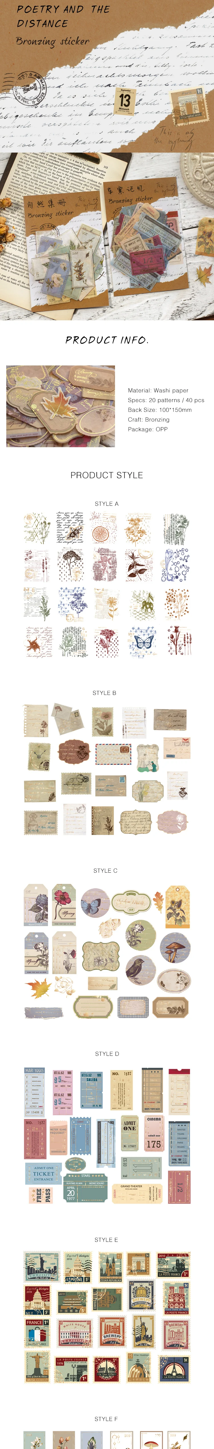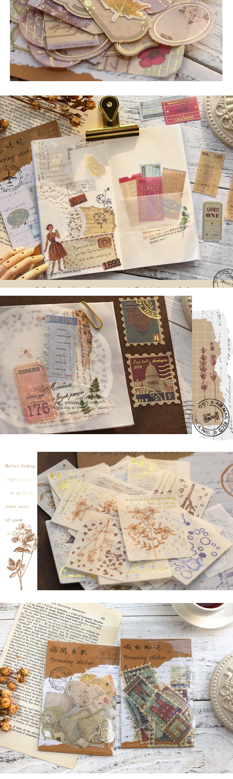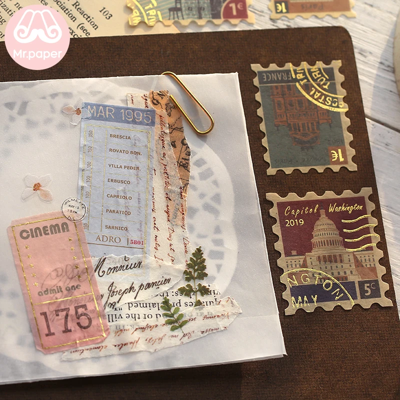 Mr. Бумага 4 шт.упак. Золотое Тиснение Винтаж Ретро штамп путешествия Цветочный узор материал наклейки деко стикеров канцелярских принадлежностей