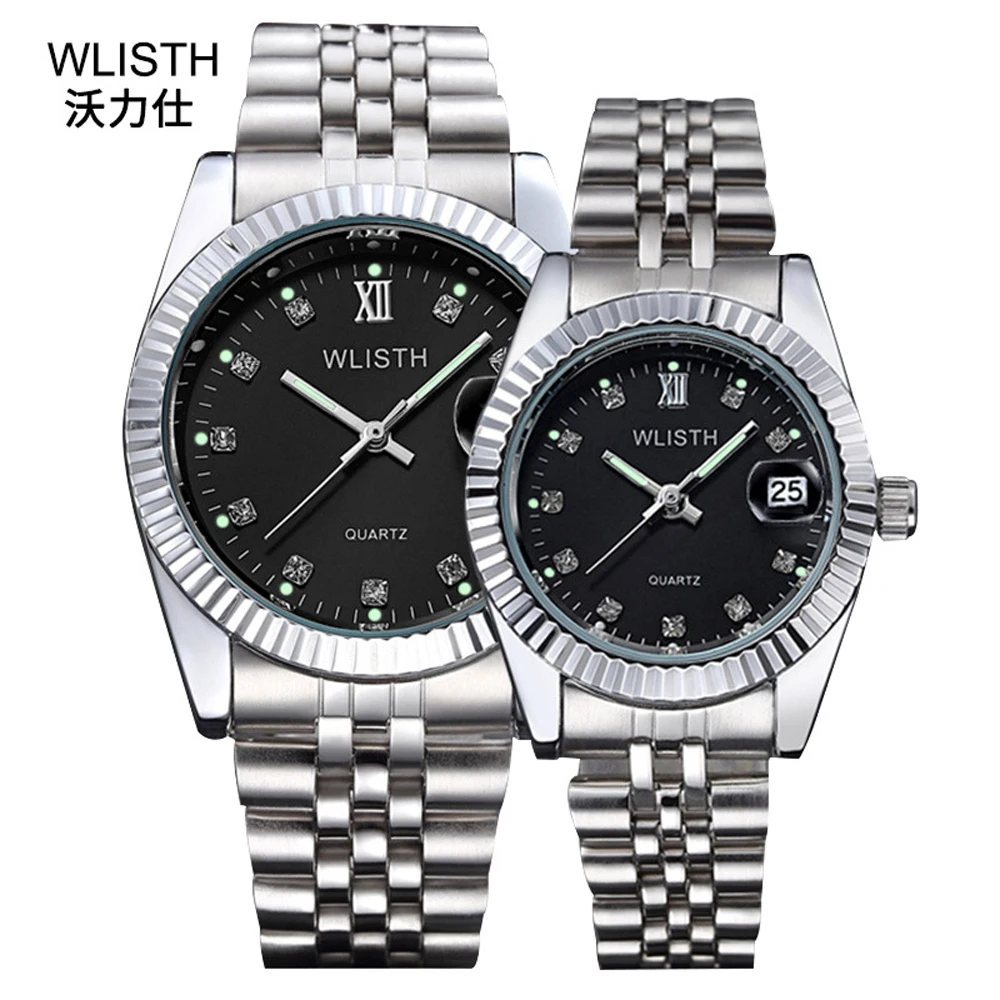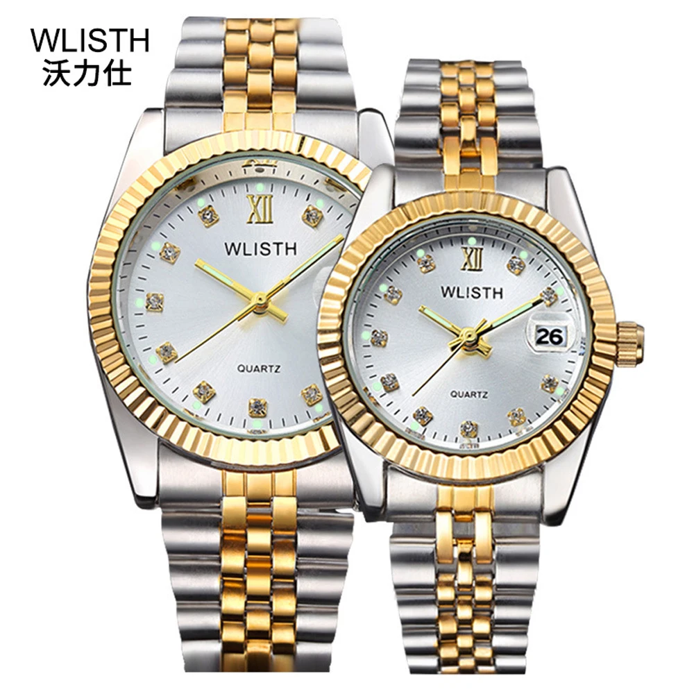 Золотые часы для влюбленных 2020 Wlisth брендовые Роскошные деловые кварцевые часы для мужчин и женщин парные часы Стальные водонепроницаемые парные часы